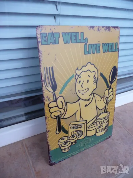 Метална ламаринена табела - Eat well, live well.