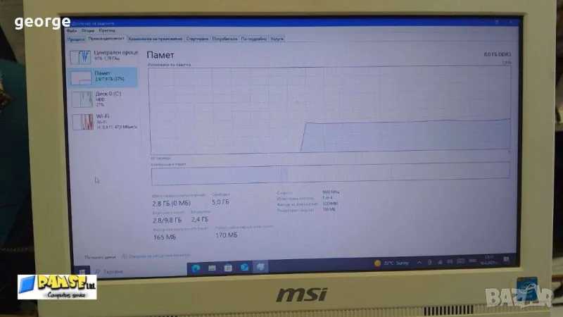 Компютър All-in-One втора употреба MSI MS-A61511 AiO, Intel Celeron 1037U 1.80 GHz (2 MB), 8 GB, DDR3, 500 GB SATA HDD, 15.6, HD 1366x768, Тъчскрийн, Камера, Клас A