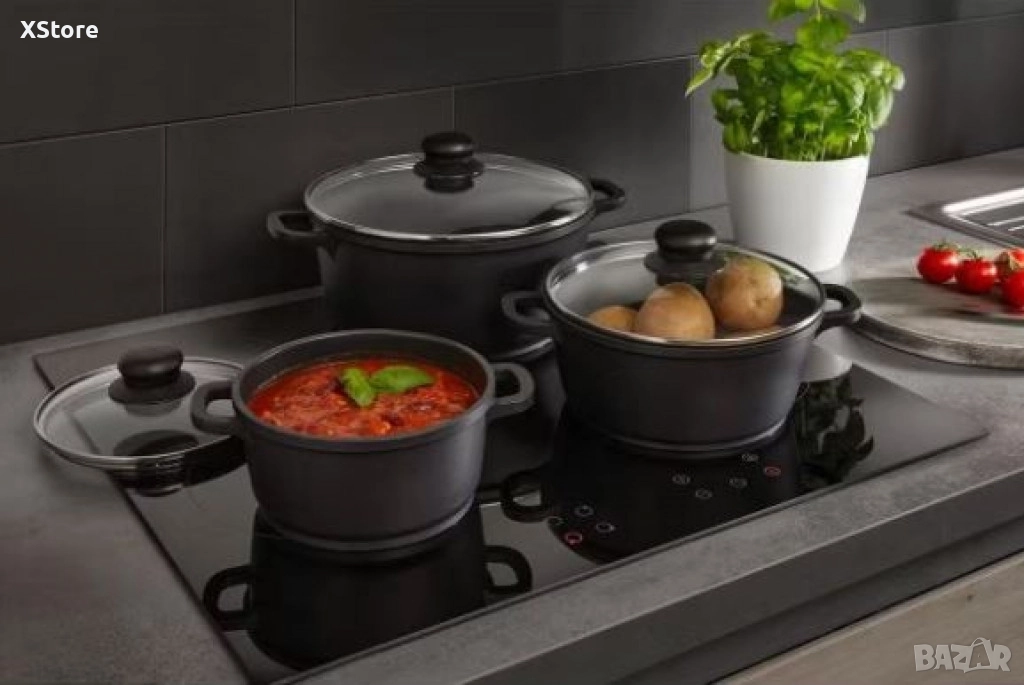 Брой части в комплекта: 6 (3 касероли + 3 капака);