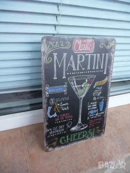 Метална табела коктейл Мартини маслинка джин водка вермут шейкър