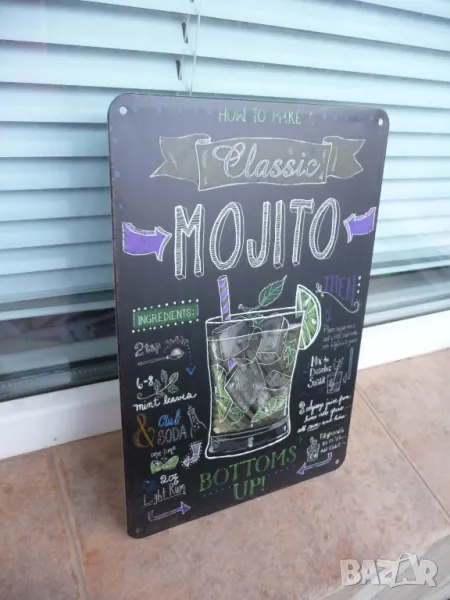 Метална табела коктейл Мохито рецепта сода захар ром наздраве лайм
