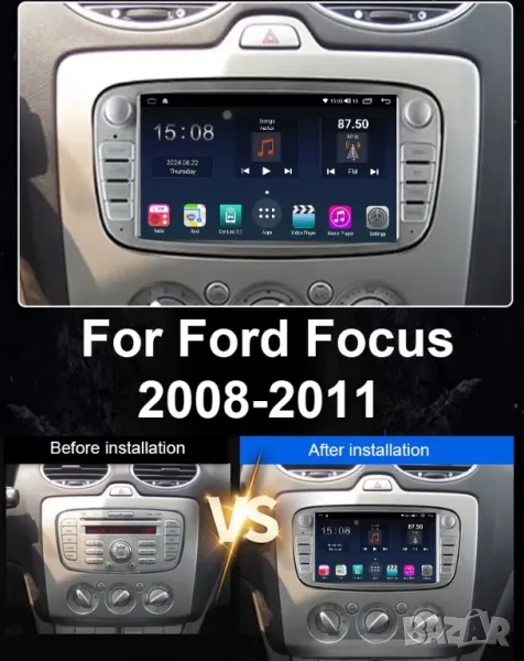 Мултимедия с Андроид за Ford Focus, S-Max, Tansit, Mondeo, Galaxy, C-Max, Kuga, Двоен дин, Android