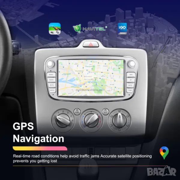 Поддържа всички навигации, съвместими с Android: IGO, WAZE, GOOGLE Maps и други