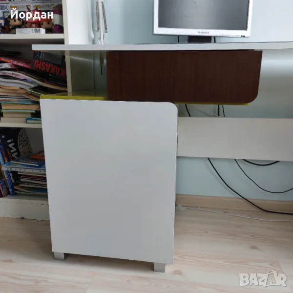 Продавам добре запазено ученическо бюро с гланцирана повърхност. Има едно чекмедже, един шкаф и отворено пространство до чекмеджето. С минимални следи от употреба.