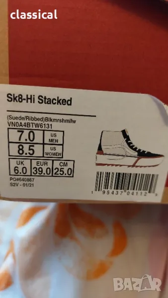 Продавам нови оригинални VANS , модел Sk8-Hi Stacked. Размер 39 , стелка 25 см. С етикети и с оригинална кутия.