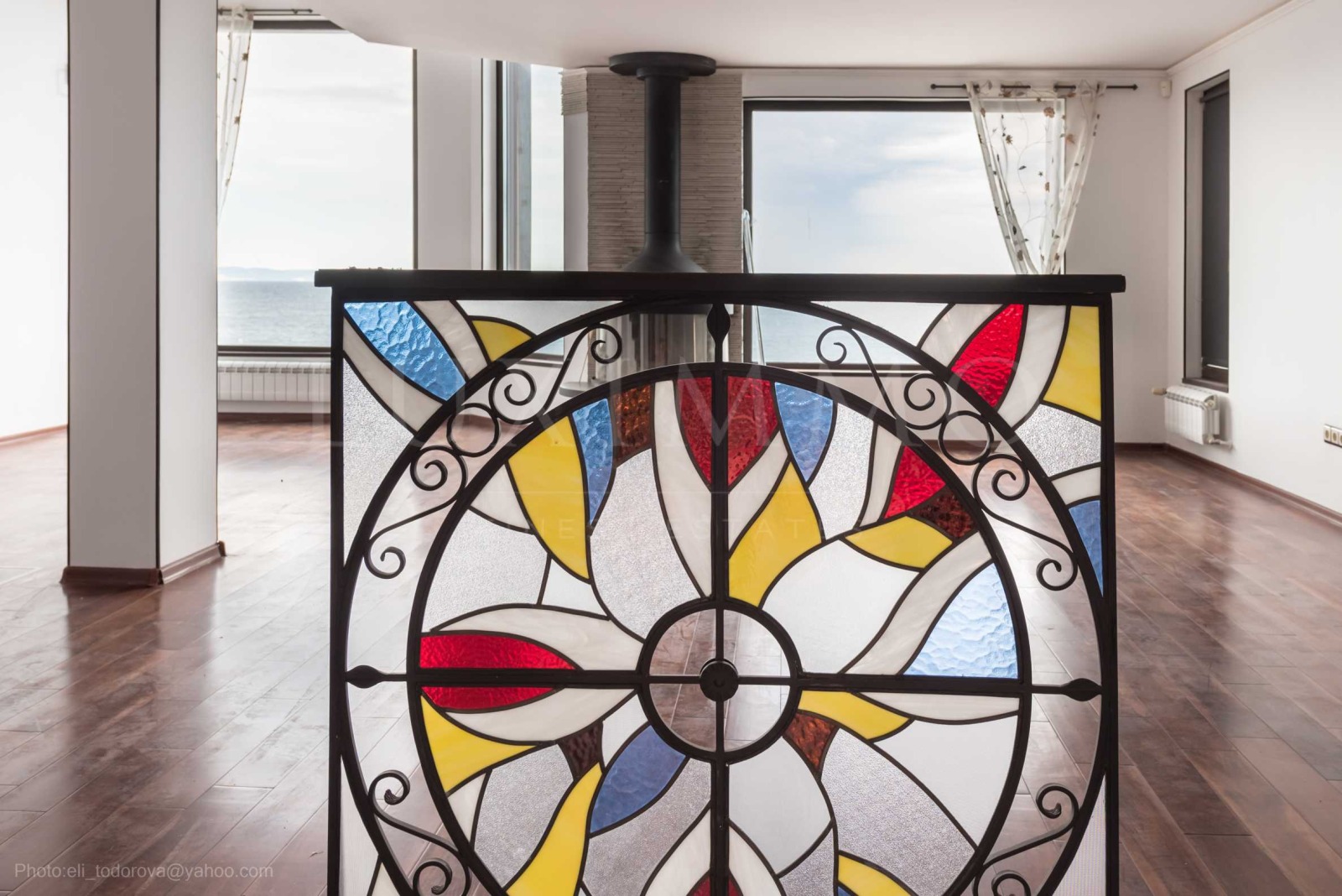 Имотът се предлага необзаведен, в степен на завършеност 'до ключ', с кухня. Разполага със собствен асансьор и сауна, има модерна камина.