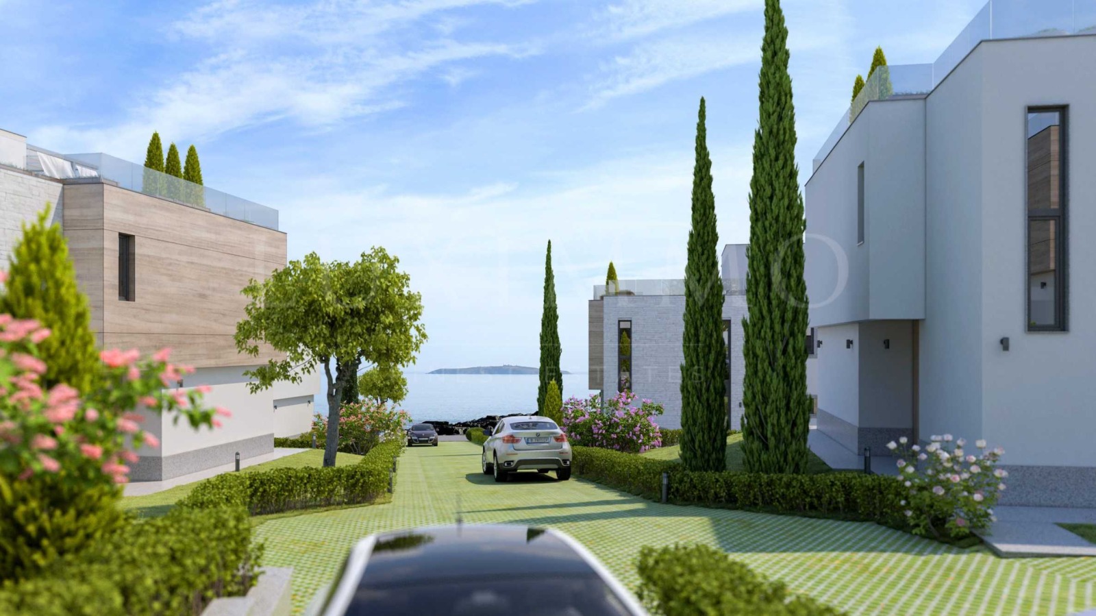 Всяка къща е с РЗП - 322.40 кв.м и парцел от 700 кв.м. Проектирани на 3 нива, имотите са ориентирани към морето, с панорама към морския залив и остров 'Св. Иван'.