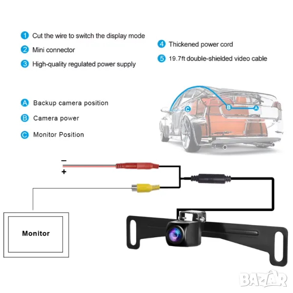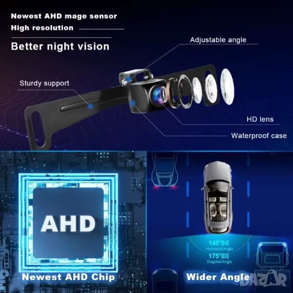 1 x AHD камера за задно виждане1 x 6 метра видео кабел
