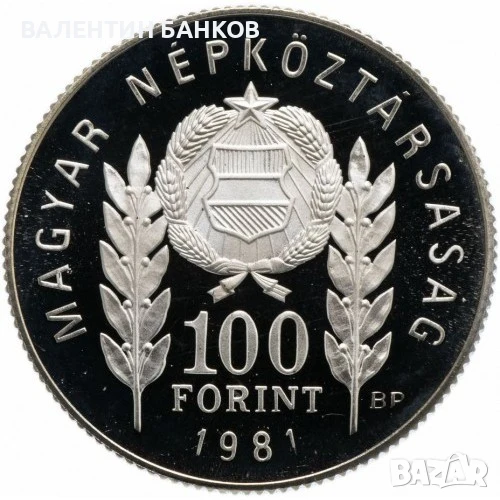 100 - форинта 1300 години България БОТЕВ И ПЕТЬОФИ 1981 - Унгария - 15лв. ПРОДАДЕНА