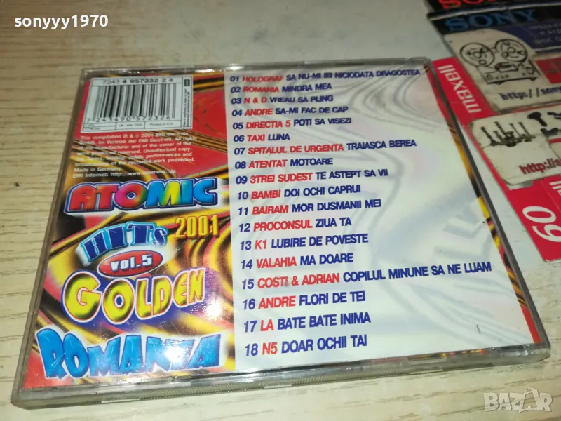 ATOMIC GOLDEN HITS 5 ROMANIA 2001 CD-идеален диск от колекционер-КРАЙНИ ЦЕНИ.ПАЗАРЛЪЦИ НЕ! пращаме само с еконт с преглед и тест след превод на капаро за куриерската услуга поради зачестили некоректни потребители-поръчки само тук в саита! по телефона и със смс не! краини цени! бартери не правиме! ПАРИ НЕ ВРЪЩАМЕ! всеки ден нови неща-още 2-3 наши обяви тук