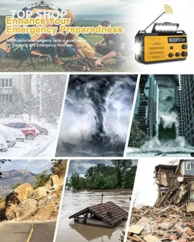 Множество Функции: AM/FM радио, SOS аларма, фенер с 3 режима, лампа за четене с 2 режима, USB зарядно за телефони.