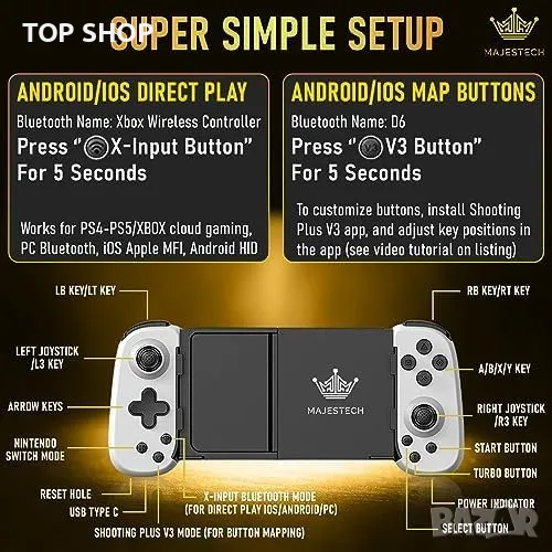 Нов Мобилен Гейм Контролер 2023 За игри iPhone и Android Bluetooth → Обява 49945152