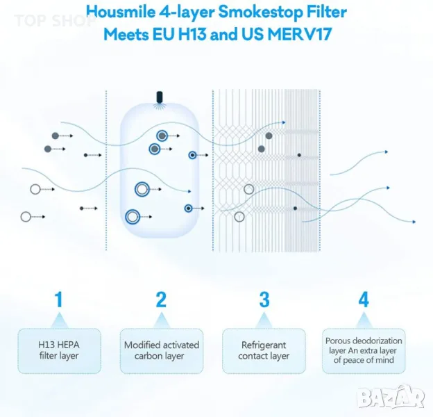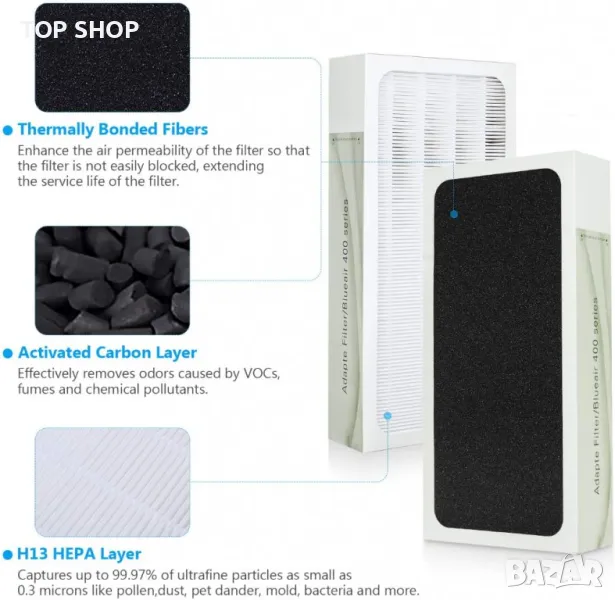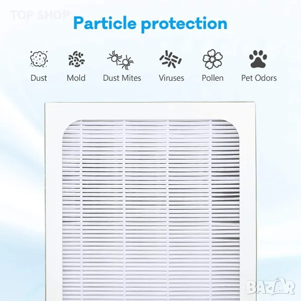Идеалният избор за премахване на замърсители като прашец, прах, пърхот на домашни любимци, спори на плесени, вируси и бактерии - с размер до 0,1 микрона.