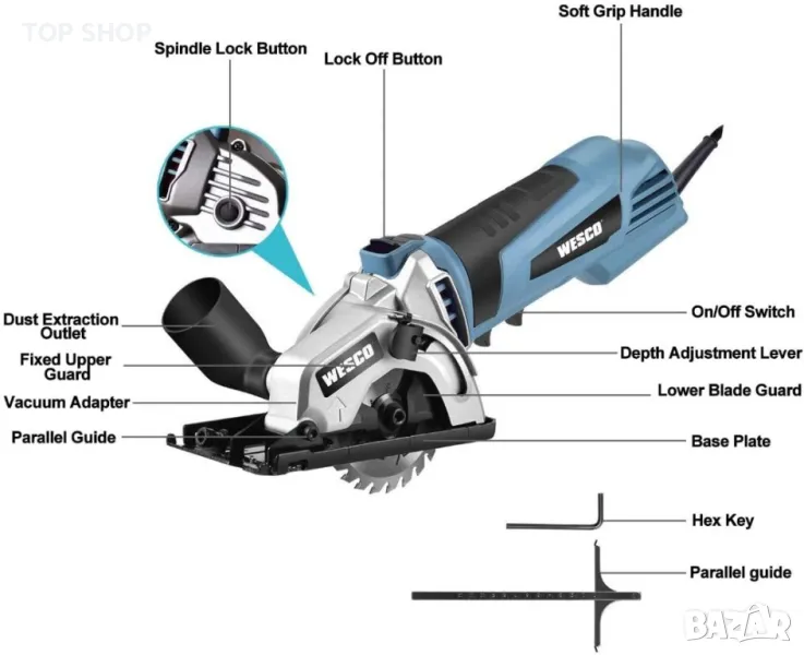 500W двигател от чиста мед, този компактен циркулярен трион осигурява висока скорост на рязане от 5100RPM.