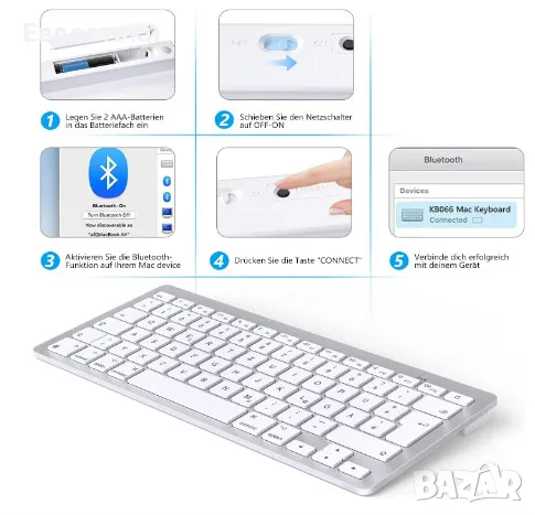 Bluetooth клавиатура OMOTON KB066 за Mac, компактна безжична клавиатура, съвместима с MacBook Pro