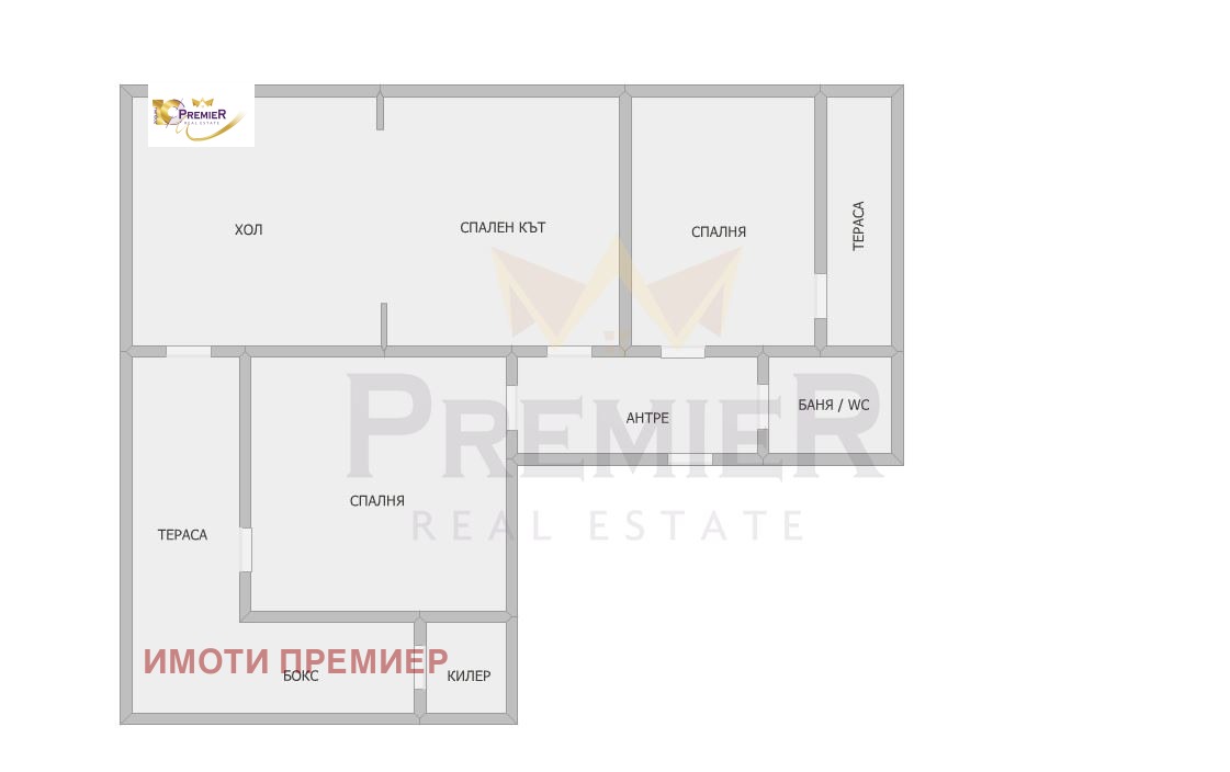 Жилището е с площ 90кв.м и се състои от широко входно антре, три просторни стаи, кабинет, голяма Г-образна тераса обособена като кухненска част, килер, втора тераса, баня и тоалет в едно, с хидромасажен панел. Изложението е север/ юг. Разпределението позволява да бъдат обособени ТРИ спални.
