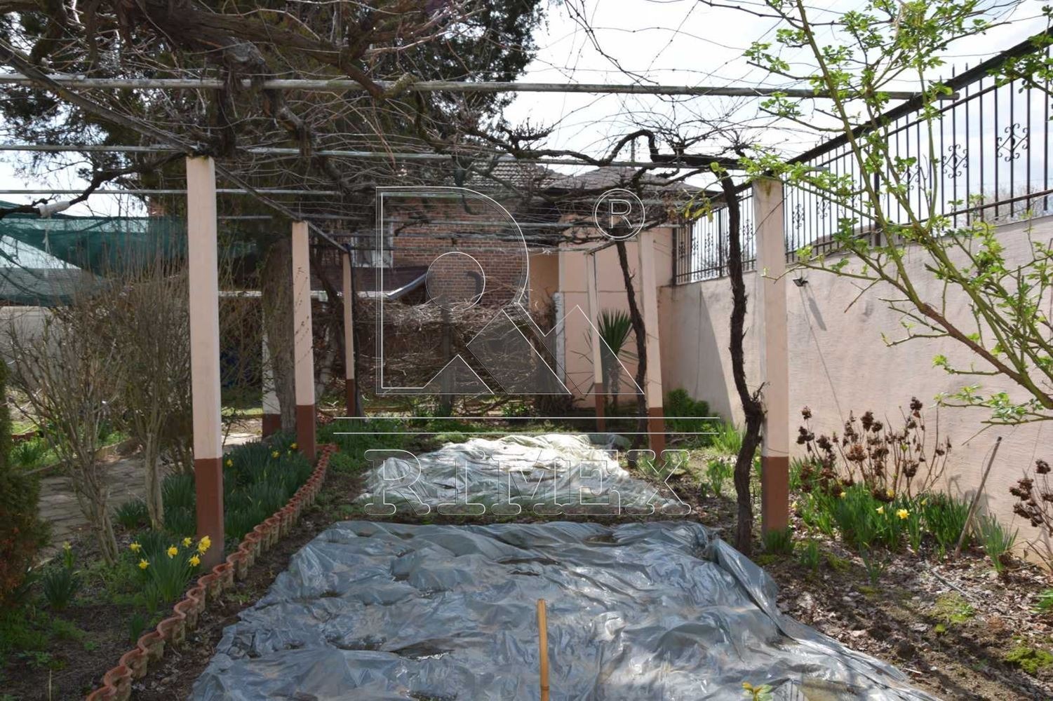 Дворното място е облагородено с овошки и цветя, отделно място за сеене на зеленчуци,голям асмалък,навес за коли -20м.
