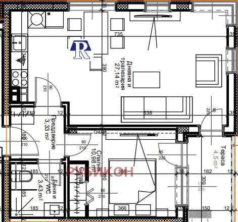Разпределението на апартамента е както следва: дневна с кухненски бокс 27.14кв.м, спалня 10.98кв.м., предверие 3.33кв.м., баня с тоалетна 3.43кв.м, тераса 4.5кв.м. Обща площ 69.23кв.м. Застроена площ 58.98кв.м. Общи части 10.25кв.м. Изложение - Севроизток/северозапад! Към жилището имате възможност да закупите и паркомясто, или гараж, които се заплащат допълнително. Агенция 'Рубикон' има подписани договори с 8 банки и може да ви съдейства за финансирането на вашия нов дом. За повече въпроси и информация,моля позвънете на посочения телефон.Адресът на офиса ни в Пловдив е бул. Източен 47, етаж 2, офис 7