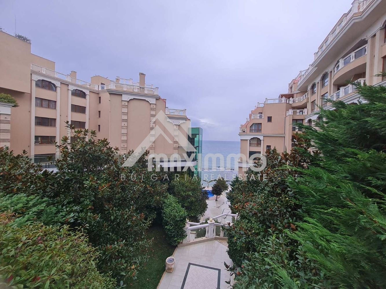 Комплексът е с денонощна охрана, басейни, ресторант и много зелени площи - първа линия до морето.!!!!