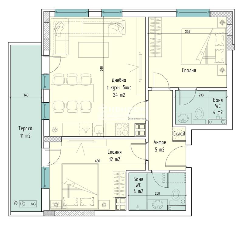 Оферта 59323: Предлагаме Ви възможността да си закупите жилище в един от най-иновативните и модерни комплекси, проектирани през последните години. Перфектното съчетание между цена, качество и локация, Луксозни екстри, задоволяващи всеки един каприз. Апартаментът се състои от ъглова дневна -24кв.м. с кухненски бокс, две самостоятелни спални, едната със собствена баня, втора баня с тоалетна, входно антре с място за перално помещение и една панорамна тераса. Високотехнологично строителство, като е заложено на водещи и наложени марки на пазара относно материалите, които ще бъдат използвани. Тухли - Wienerberger, система за покрив Ondulin, допълнителна висококачествена шумоизолация - Baumit, даваща Ви тишина и спокойствие, многокамерна дограма - Etem с троен стъклопакет 4-сезона с монтирани външни ел. щори за Вашият комфорт и лично пространство. Чиста, светла височина от 2.80м., даваща простор и обем на Вашите жилища. Умни камери с лицево разпознаване, както и 24/7 подсигурена жива охрана, ще се грижат за Вашето спокойствие. Проектиран е просторен вътрешен двор с озеленена площ , места за отдих между жилищните секции с пейки, детски и кучешки площадки, както и открито пространство за спорт. Осигурено е 100% надземно и подземно паркиране. Комплексът е свързан с голям възлов булевард и е на метри от големи търговски вериги и молове, ресторанти и развлекателни заведения. Приложените 3D изображения са примерни! Предлагаме преференциално банково кредитиране с изключително изгодни условия за клиенти на Агенция КОНДОР !ВИЖТЕ ОЩЕ ИЗГОДНИ ОФЕРТИ НА https://www.kondorimoti.com/ С ЕЖЕДНЕВНА АКТУАЛИЗАЦИЯ!