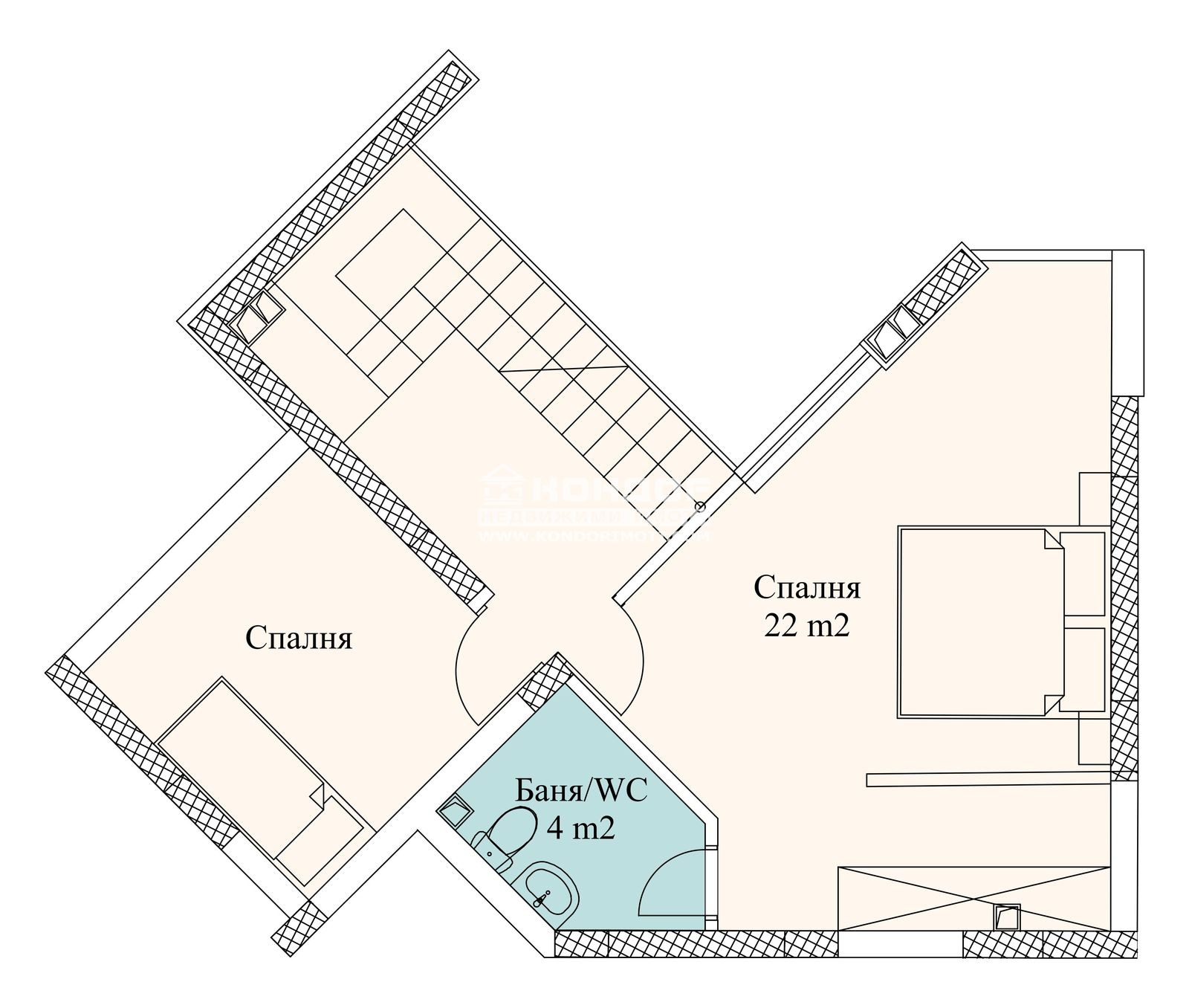 Разпределения - Предлагаме на Вашето внимание тристаен апартамент тип мезонет разположен на две нива, състоящ се от просторна дневна с трапезария и кухненски бокс 32 кв.м., тераса, баня с тоалетна, стълби, които водят към второ ниво, където са ситуирани голяма спалня 22кв.м. с дрешник и собствен санитарен възел, детска стая и широко предверие. Към апартамента има прилежаща изба.