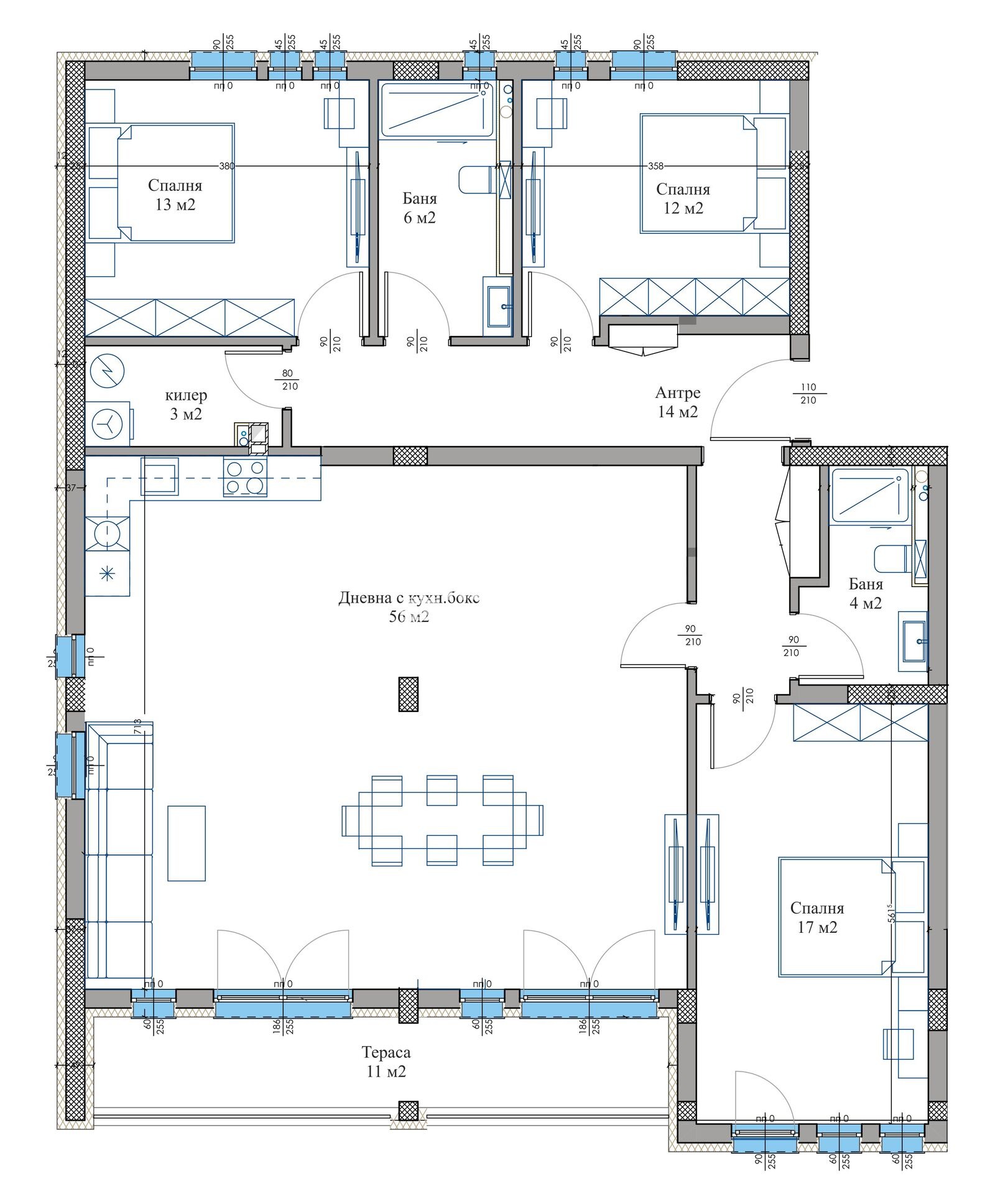 Оферта 66041: ЕКСКЛУЗИВНА НОВА СГРАДА, САМО ОТ КОНДОР ! Представяме ви нискоетажен модерен комплекс в индустриален стил в тих и спокоен район заобиколен от зеленина. Проектът предвижда големи и светли помещения с правилни форми, комфортни за обитаване и обзавеждане. Жилището, което ви предлагаме е с изложение ЮГ/ЗАПАД и се състои от ГОЛЯМА, ЪГЛОВА ДНЕВНА С ТРАПЕЗАРИЯ И КУХНЕНСКА ЧАСТ- 56 КВ.М, три спални, от които родителската 17 кв.м, две бани с тоалетни, перално помещение, широк коридор 14 кв.м и тераса 11 кв.м към дневната. Комплексът е от затворен тип с бариери, но БЕЗ ТАКСИ за поддръжка, с видеонаблюдение. Високо качество на изпълнение на обекта: външна топлоизолация 12см, шумоизолация на външните стени, шумо и топлоизолация на междуетажните плочи, многокамерна ПВЦ дограма с двоен стъклопакет, асансьор с топла връзка до подземието, станции за електромобили, кабелни трасета- SMART House и 2200 кв.м ОЗЕЛЕНЕН ДВОР! Избор на надземни и подземни гаражи и паркоместа на цени от 10 000 евро! Гъвкъви схеми на плащане спрямо клиента, съдействие от банки партньори на агенцията за кредит!ВИЖТЕ ОЩЕ ИЗГОДНИ ОФЕРТИ НА https://www.kondorimoti.com/ С ЕЖЕДНЕВНА АКТУАЛИЗАЦИЯ!