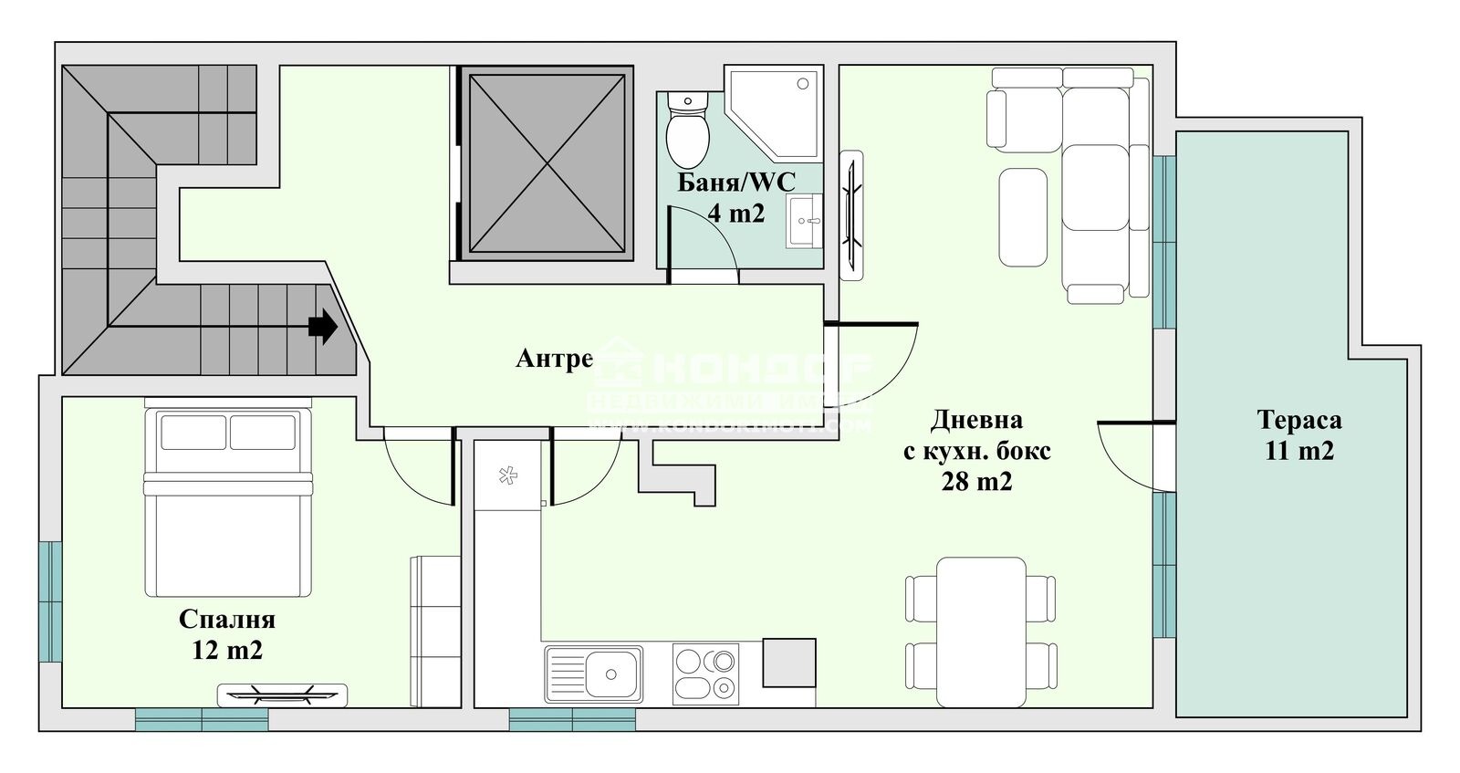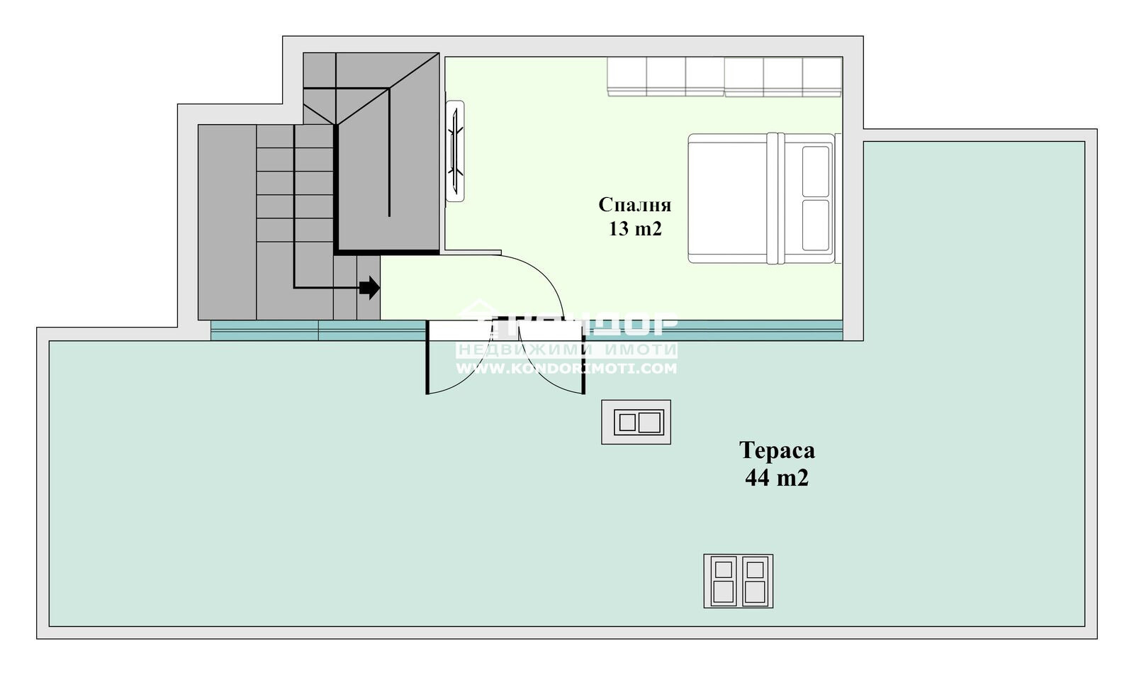 Оферта 63830: АКТ 16!!! Имаме удоволствието да ви предложим тристаен апартамент тип мезонет в близост до Евмолпия и търговски център Гранд с Подарък - Паркомясто !!! Малка бутикова сграда - тип фамилна къща, състояща се само от щест жилища в един от най-предпочитаните райони на централна градска част. Апартаментът се състои от просторна югозападна дневна - 29кв.м. с обособена светла кухня, трапезарна част и зона за ъглова ниска мебел, една самостоятелна спалня 12кв.м., баня с тоалетна, стълби които водят към второ ниво, където е ситуирана втора спалня с излаз на голяма панорамна тераса 45кв.м. Строителството е изпълнено по всички европейски изисквания за качество: под - замазка, стени шпакловка, ВиК до тапа, Ел. инсталация до ключ, пълно окабеляване, масивна входна блиндирана врата. Луксозно завършване на общи части. В обявената продажна цена е включено Бонус Паркомясто във вътрешния двор, като има възможност допълнително да се закупи Партерен Гараж !!! Предпочитан район поради бързия достъп до главната пешеходна ул-ца на града, множеството детски градини, университети, паркови среди и зелени зони, както и бърз излаз на централни възлови булеварди. Възможност за Закупуване чрез Банков Кредит !!!