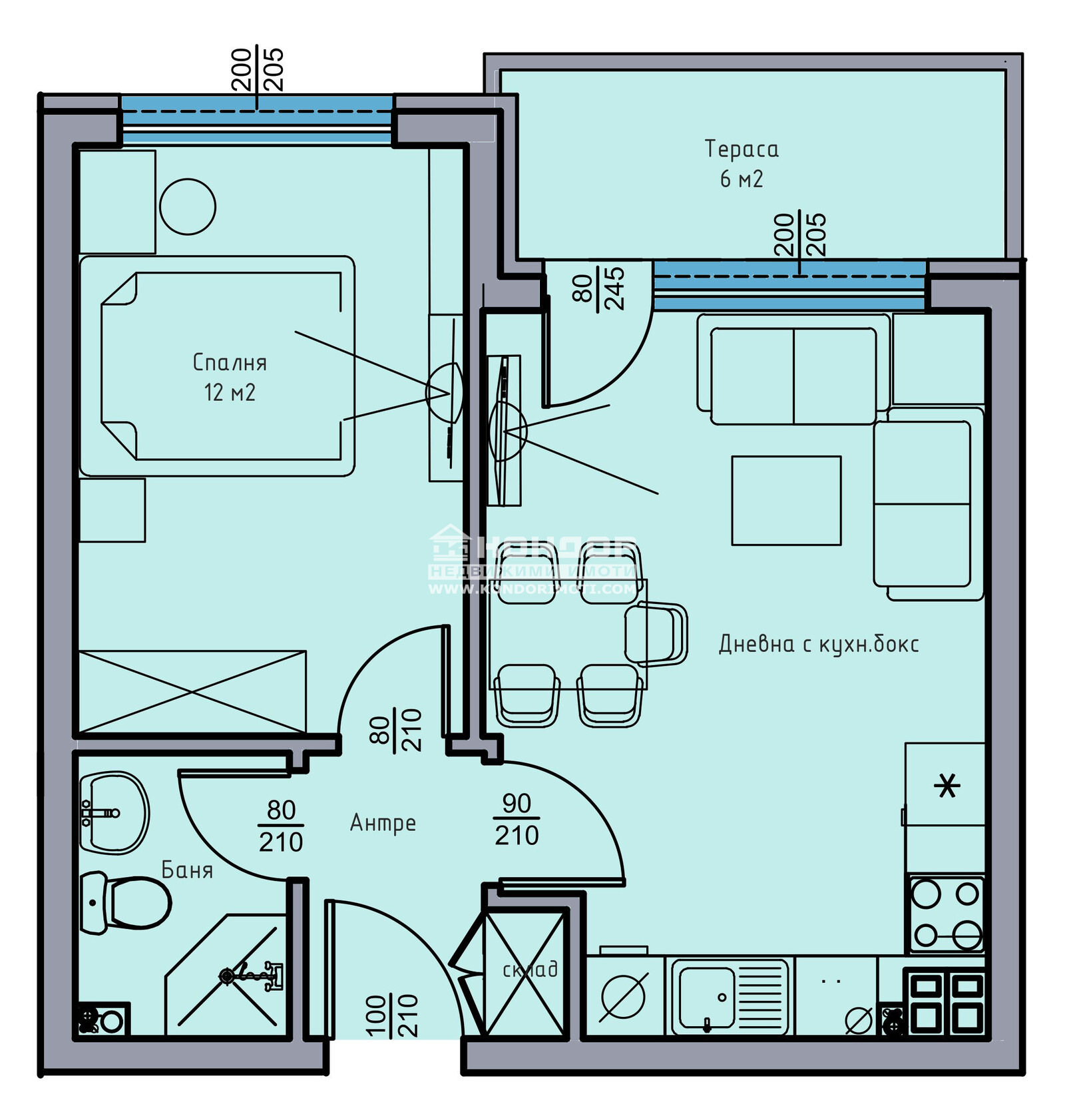 ДВУСТАЕН апартамент в малка сграда с модернистичен почерк, съвременна визия и с нисък % общи части! Жилището се състои от дневна с трапезария и кухненски бокс, една самостоятелна спалня, баня с тоалетна, входно антре с килер и една прекрасна тераса. Строителството ще се извършва от висококачествени материали и съвременни технологии, които защитават вашия дом от външните влияния. За това се залага на 10см. външна топлоизолация на австрийската фирма BAUMIT, тухли WIENERBERGER създадени от 100% естествени материали ,които действат като естествен регулатор на микроклимата. За по- оптимални резултати се залага на на дограма Rehau-EuroDesign 70 с механизъм с двойно отваряне. Общите части са с мрамор и травертин а асансьора е италиански електромеханичен с луксозна кабина с мрамор, италианско дърво и лед панели. Входните врати на апартамента са масивни , блиндирани на Диадорс, ел. инсталацията е изпълнена с материали на ТМТ-Елдом с контакти на Шнайдер, три вида окабеляване за интернет и ТВ- оптичен до всеки апартамент. Изберете достоен лукс и така мечтаната хармония и сигурност. Приложеното 3D изображение е примерно!ВИЖТЕ ОЩЕ ИЗГОДНИ ОФЕРТИ НА https://www.kondorimoti.com/ С ЕЖЕДНЕВНА АКТУАЛИЗАЦИЯ!