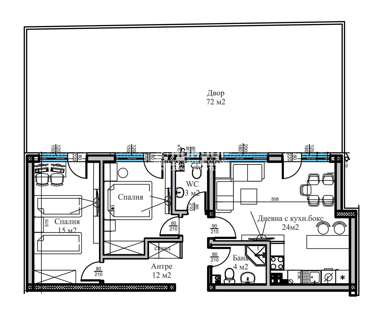 Оферта 66215:Представяме Ви новоизградена малка и луксозна сграда , проектирана така, че да създаде максимален комфорт и уют в един от най- бързо развиващите се райони с лесен и удобен достъп и транспорт към центъра на Града. Сградата се намира на тихо и спокойно място в близост до всички необходими комуникации. Жилището се състои от дневна с кухненски бокс и излаз на обща веранда, две самостоятелни спални: детска 12кв.м. и родителска 15кв.м., баня с тоалетна, втори санитарен възел, килер и входно антре. Обектът е построен от фирма с доказан опит, като разполагаме с готови сгради и можем да Ви покажем качеството на изпълнение, което се осъществява с висококачествени материали и съвременни технологии, по европейски стандарт, петкамерна PVC дограма, червена Австрийска Тухла, масивна Блиндирана входна врата с 4-странно заключване, сензорно осветление, хидравлични асансьори с огледална кабина. Свободни паркоместа в двора на цени от 13000 евро !!! Възможност за Закупуване чрез Банков Кредит или разсрочено изплащане по време на строителството !!! Възползвайте се от възможността да живеете в малка сграда на спокойно място !!!