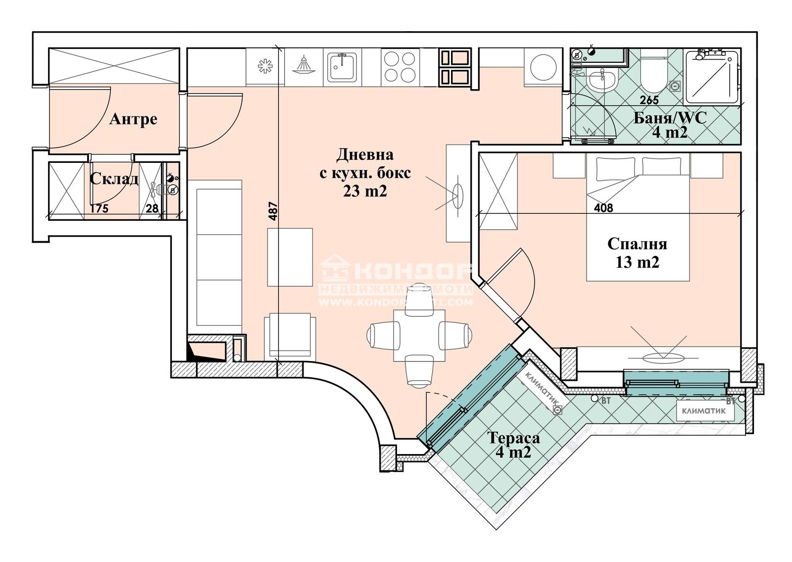 Оферта 59987:СПЕЦИАЛНО ПРЕДЛОЖЕНИЕ- ТОП ЛОКАЦИЯ в сърцето на гр. Пловдив. Представяме Ви проект, вдъхновен от най-добрите имоти на европейския пазар, представляващ възможност за комбинация между удобно разположен дом, качествено строителство и централен район. Новоизградена, модерна и луксозна сграда с малък брой апартаменти и функционално разпределение. Жилището, което ви представяме е двустайно и се състои от дневна с трапезария и кухненски бокс, една спалня, баня с тоалетна, склад, входно антре с място за гардероб и една тераса.