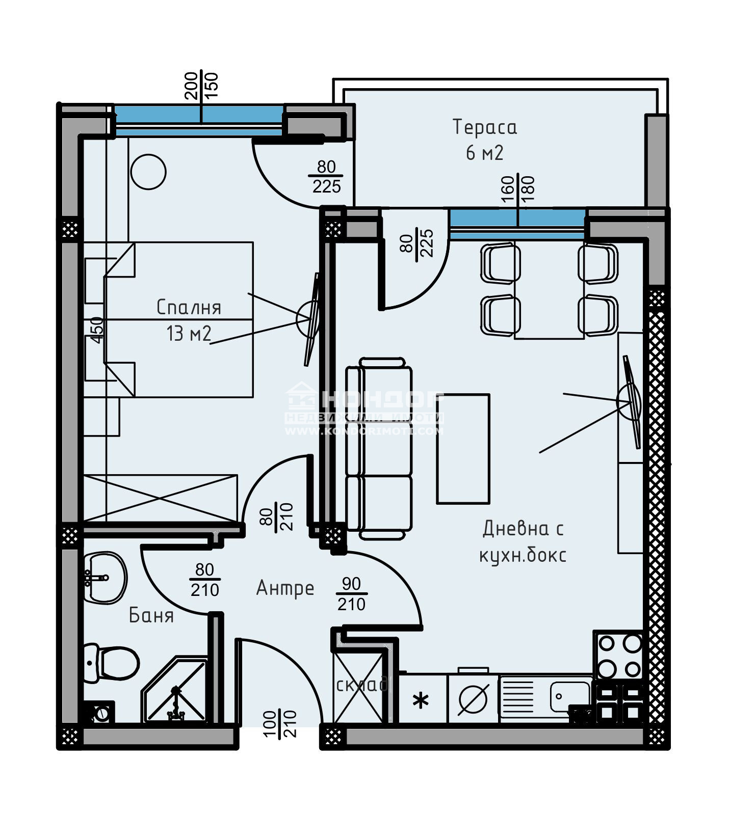 Оферта 63214: Фиксирани Цени - без опция за промяна по време на строителството !!! Сега имате възможността да си закупите функционален 2-стаен апартамент в малка новоизграждаща се луксозна сграда, проектирана така, че да създаде максимален комфорт и уют с изключително нисък процент общи части - 13.00 %. Страхотна Локация в един от най-бързо развиващите се райони с нискоетажно застрояване на тихо и спокойно място в близост до всички необходими комуникации. Жилището се състои от слънчева дневна с трапезария и кухненски бокс, една самостоятелна спалня - 13.20 кв.м., баня с тоалетна, входно антре със склад, подходящ за перално помещение и една тераса 6кв.м., обща и за двете стаи. Обектът се строи от фирма с доказан опит и множество завършени проекти, осъществени с висококачествени материали и съвременни технологии, по европейски стандарти, шесткамерна PVC дограма, червена Австрийска Тухла, масивна Блиндирана входна врата с 4-странно заключване, сензорно осветление, хидравлични асансьори с огледална кабина. Свободни Паркоместа в двора на цени от 8000 евро!!! Възможност за закупуване чрез Банков Кредит или на разсрочено плащане в рамките на строителството !!! ЧУДЕСНА ИНВЕСТИЦИЯ! Възползвайте се от възможността да живеете в малка бутикова сграда!!!ВИЖТЕ ОЩЕ ИЗГОДНИ ОФЕРТИ НА https://www.kondorimoti.com/ С ЕЖЕДНЕВНА АКТУАЛИЗАЦИЯ!