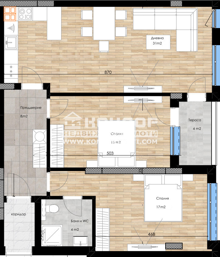 Оферта 57133: АКТ 16!!! Представяме на Вашето внимание комплекс от затворен тип в град Пловдив. Вече 15 години компанията акцентира върху комфорта, безопасността и сигурността в своите комплекси, естетичното оформление на пространството около сградите и отлично развитата инфраструктура, сред която умело да бъдат съчетавани работа, развлечения, спорт и почивка. Апартаментът, които ви предлагаме се състои от просторна и светла дневна - 31 кв.м., две големи самостоятелни спални: родителска 17 кв.м. със собствена баня с тоалетна, детска 15 кв.м., втора баня с тоалетна, широко входно антре с място за гардероб и перално и една тераса. Най-новият проект на компанията е луксозен комплекс, който е разположен в южната част на град Пловдив, обграден от природа, която дава неподправено усещане за простор и спокойствие, с невероятна гледка към Родопите. Комплексът се базира на концепцията за извънградски комплекс, където в голям терен се разполагат по-малки жилищни единици, къщи и апартаменти, които предлагат спокойствието в покрайнините на града. В сградите има жилища с една и две спални, единични и двойни подземни и надземни гаражи, както и външни паркоместа. На входа на всяка сграда е поставена система за индивидуален чип, високоскоростни асансьори, а вътрешнопарковото пространство е решено в богата висока и ниска растителност, заобиколена от живописни зеленина, детска площадка и площ за спорт. Благодарение на ниската си плътност на застрояване, архитектурния си дизайн и добрата ориентация, комплексът е предпочитано място, което осигурява на обитателите си спокоен и качествен живот. Осигурено Банково Финансиране с изключително Изгодни условия за клиенти на Агенцията от Водещи Банки !!!