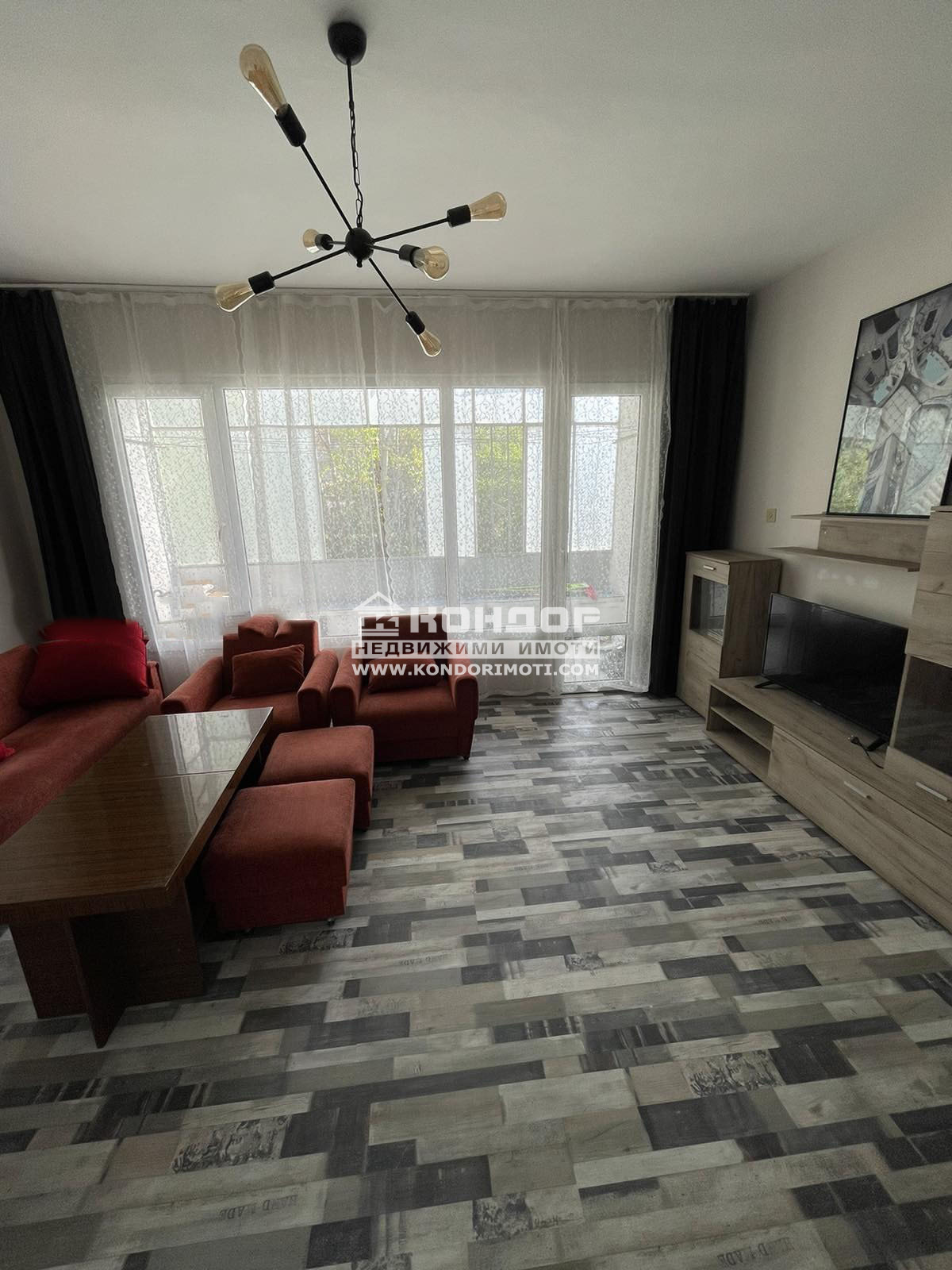 Оферта 61530: Предлагаме ви НАПЪЛНО ОБЗАВЕДЕНО И РЕНОВИРАНО ЖИЛИЩЕ в малък блок обгърнат в зеленина и тишина. Апартамента се състои от 2 южни спални и южен хол с голяма затворена тераса, кухня с приобщена тераса, голям Г-образен коридор и отделна баня с тоалетна. Дограмата на жилището е изцяло подменена, реновирани сервизни помещения, кухня оборудвана с всички необходими ел. уреди. Към жилището има и избено помещение от 8кв.м. и свободна зона за паркиране на живущите.ВИЖТЕ ОЩЕ ИЗГОДНИ ОФЕРТИ НА https://www.kondorimoti.com/ С ЕЖЕДНЕВНА АКТУАЛИЗАЦИЯ!
