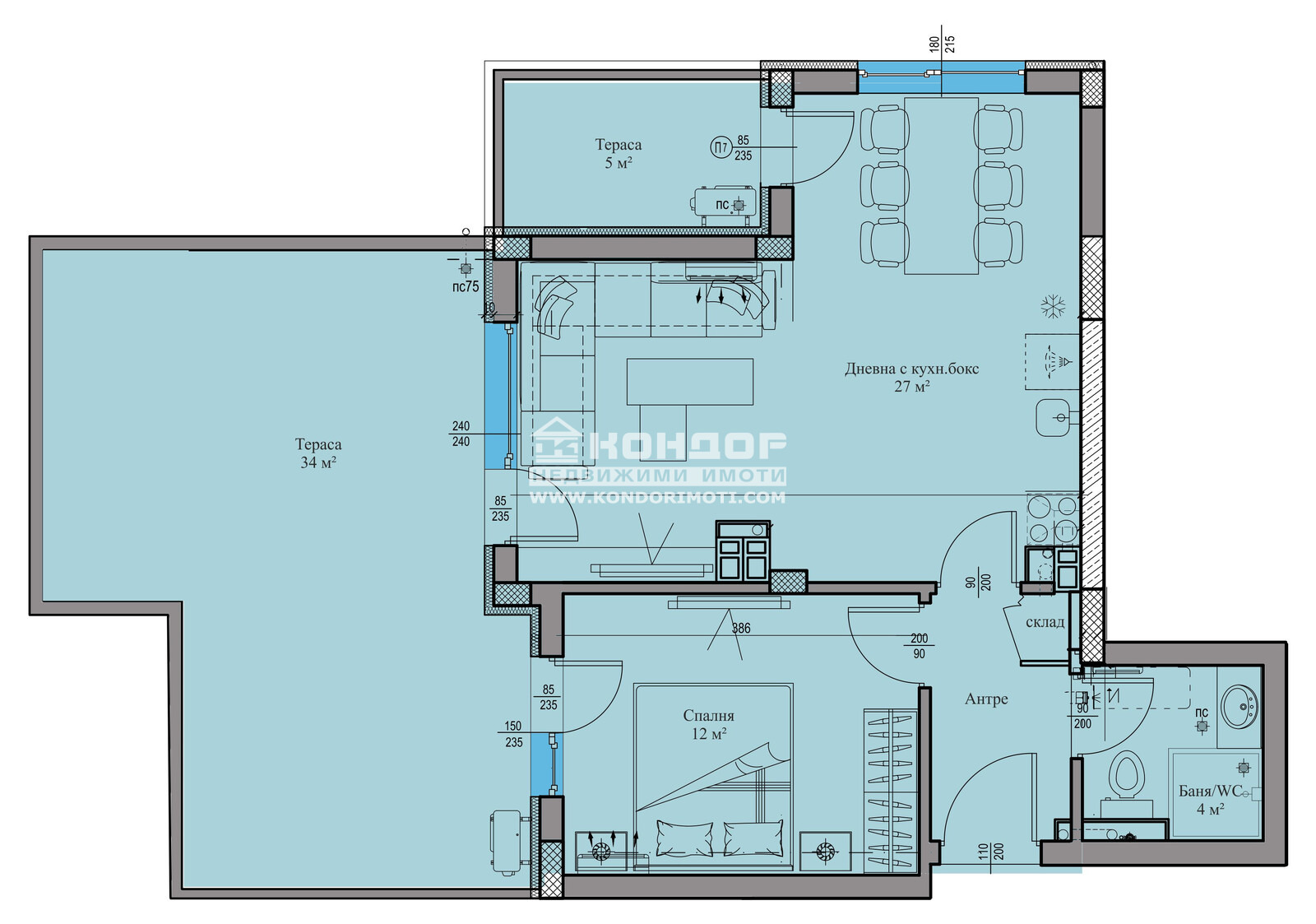 Оферта 63534: Имаме Удоволствието да ви Предложим просторен и функционален двустаен Апартамент в луксозна сграда, отличаваща се с модерна и съвременна архитектура в един отлично развиващ се район за живеене райони с отлична локация в близост до Училища, детски градини, удобен транспорт към централна градска част и големи хипермаркети. Проектът е с нисък процент общи части, което дава възможност на клиентите да получат повече реална площ !!! Жилището се състои от просторна дневна с трапезария и кухненски бокс /27 кв.м./, една непреходна спалня 12кв.м., баня с тоалетна, входно антре с място за гардероб и две тераси. Сградата се изпълнява от реномирана Строителна Компания, която разполага с множество готови обекти, утвърдила се като една от водещите и Коректни Фирми в Града. Апартаментите ще бъдат завършени според всички изисквания за съвременно строителство - блиндирана врата, 6-камерна дограма, МДФ-вътрешни врати. Луксозни общи части, хидро и топло изолация, хидравличен асансьор, гранитено стълбище, алуминиев парапет. Свободни Подземни Гаражи и външни Паркоместа . Сградата се намира на приятно и спокойно място в близост до училища, детска градина и удобен транспорт - ОТЛИЧНА ИНВЕСТИЦИЯ !!! Възможност за изплащане на разсрочено плащане в рамките на строителството !!!ВИЖТЕ ОЩЕ ИЗГОДНИ ОФЕРТИ НА https://www.kondorimoti.com/ С ЕЖЕДНЕВНА АКТУАЛИЗАЦИЯ!