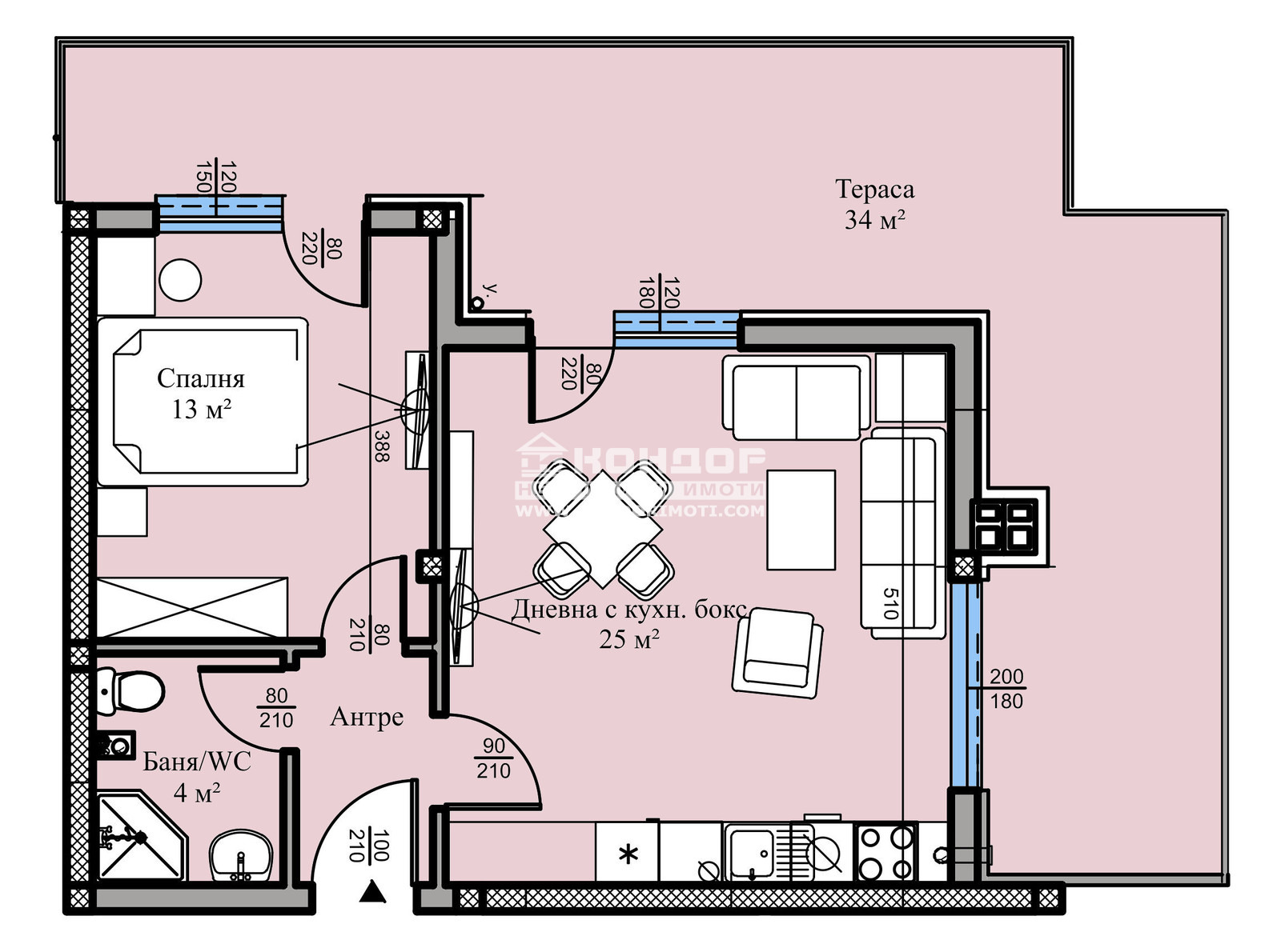 Оферта 61489: Фиксирани Цени - без опция за Промяна по време на Строителството !!! Предлагаме Ви възможността да си закупите двустаен апартамент в нискоетажна жилищна сграда в един от най-предпочитаните напоследък райони за живеене, намираща се в близост до Гребна База, училища, детски градини, удобен транспорт и големи хранителни хипермаркети. Жилището се състои от ъглова дневна 25кв.м., една самостоятелна спалня 13кв.м., баня с тоалетна, входно антре и една панорамна тераса 34кв.м. с място за изграждане на барбекю. Сградата е проектирана с нисък процент общи части, което дава повече реална и използваема площ на стаите и създава максимален комфорт на своите ползватели. Перспективна ИНВЕСТИЦИЯ ЗА ОТДАВАНЕ ПОД НАЕМ!!! Изпълнението e осъществeno от фирма с доказан опит и множество построени сгради, като се използват висококачествени материали и съвременни технологии, по европейски стандарт, шест камерна PVC дограма, блиндирана входна врата с 4-странно заключване, сензорно осветление, хидравлични асансьори с огледална кабина. Свободни паркоместа и партерни гаражи!!! Възможност за закупуване на лизинг или чрез банков кредит!!!