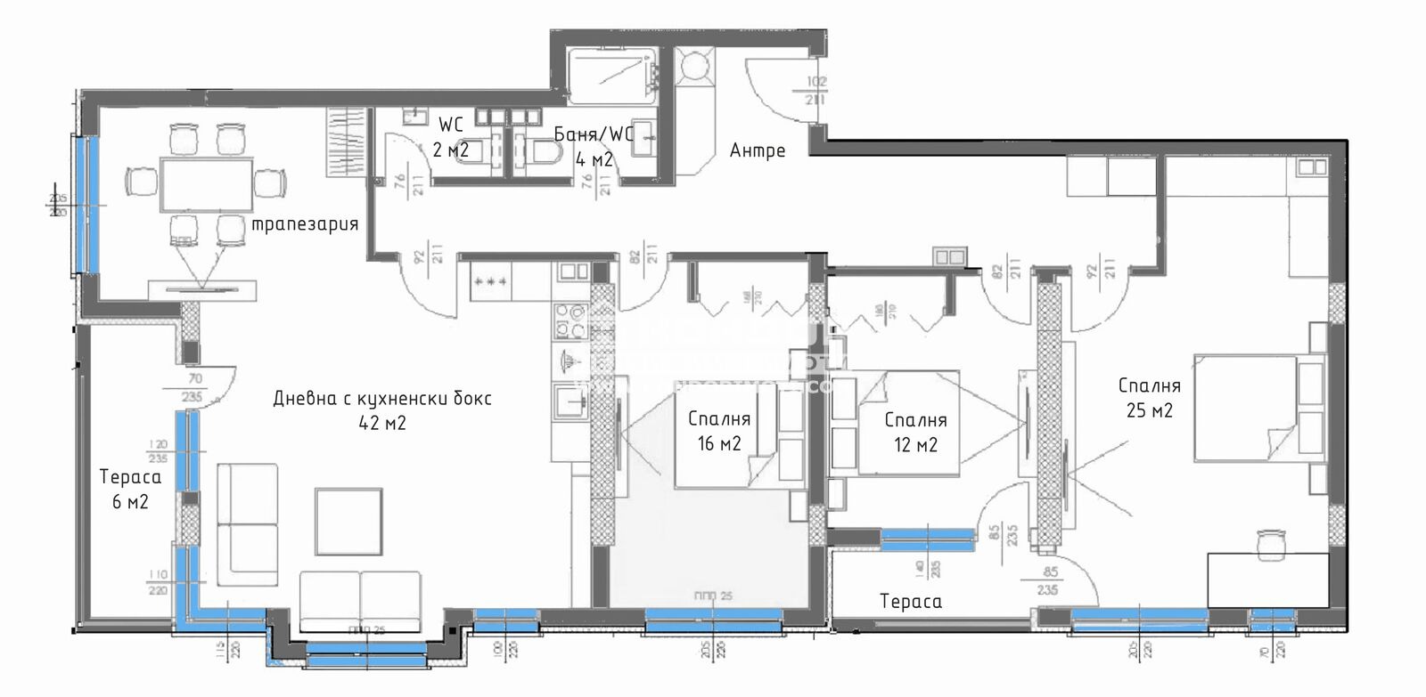 Оферта 63952: Предлагаме на вашето внимание МНОГО ЛУКСОЗНА сграда, която привлича вниманието със своята локация, разположена в близост до супер центъра на града, голям хранителен Хипермаркет, училище и удобен транспорт. Просторен многостаен апартамент с изложение ЮГ/ЗАПАД, състои се от светла ъглова дневна - 42кв.м. оформена на кътове: кът за мека мебел, кухненска част и светъл кът за хранена с голяма трапезна маса, три големи самостоятелни спални, съответно с площ от 12,16 и 25кв.м., баня с тоалетна, втори санитарен възел широко входно антре с място за перално и две тераси. Изпълнението е осъществено с висококачествени материали и съвременни технологии, по европейски стандарт, шесткамерна PVC дограма, блиндирана входна врата с 4-странно заключване, сензорно осветление, хидравлични асансьори с огледална кабина. Проектът включва както жилищна, така и обществено обслужваща дейност, която гарантира удобства от първа необходимост, Гъвкави схеми на разсрочено плащане в рамките на строителството, както и съдействие за банково кредитиране с изключително изгодни условия за клиенти на агенция 'Кондор'!!! СВОБОДНИ ПОДЗЕМНИ Паркоместа!!! Приложените снимки са от друга готова сграда на строителната фирма. Цената е без вкл. ДДС!ВИЖТЕ ОЩЕ ИЗГОДНИ ОФЕРТИ НА https://www.kondorimoti.com/ С ЕЖЕДНЕВНА АКТУАЛИЗАЦИЯ!