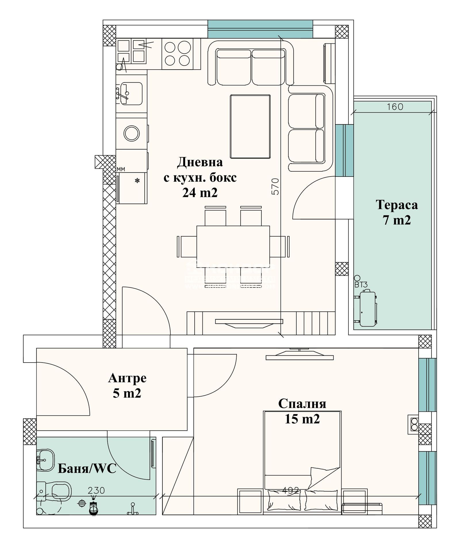 Оферта 60224:Специално предложение - НОВА ГОТОВА СГРАДА !!!Предлагаме на Вашето внимание Двустаен апартамент, състоящ се от ъглова дневна 24кв.м. с трапезария и кухненски бокс, една голяма самостоятелна източна спалня, баня с тоалетна, входно антре, килер и чудесна тераса. Жилищната сграда се изгражда в унисон с най-високите европейски стандарти за качество. Използваните материали са съобразени с най-новите тенденции в строителството - модерна външна облицовка, покривна и фасадна изолация, PVC пет камерна дограма, луксозни общи части и други, допринасят допълнително за усещането за лукс и комфорт на обитателите. За удобството на своите собственици, сградата разполага с подземен паркинг с Гаражи и Паркоместа. Начин на плащане - Кондор имоти предлага възможност за банково финансиране от водещи банки на преференциални условия за клиенти на Агенцията !!!ВИЖТЕ ОЩЕ ИЗГОДНИ ОФЕРТИ НА https://www.kondorimoti.com/ С ЕЖЕДНЕВНА АКТУАЛИЗАЦИЯ!