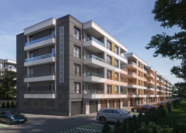 Оферта: 2354 .НОВО!! БЕЗ КОМИСИОН!! МИРАЖ ПАРК е едно ново бижу, което се намира на чудесно място в района, като сградата обединява спокойствие, сигурност, лукс и чудесно местоположение. Предлагаме Ви чудесен ДВУСТАЕН АПАРТАМЕНТ с възможност за закупуване на ПАРКОМЯСТО във вътрешен двор или ГАРАЖ. СГРАДАТА е с модерна архитектура, с визия прилягаща за квартала. Апартаментът се състои от южна дневна с трапезария и кухненски бокс, една спалня, баня с тоалетна, входно антре, склад и лоджия. Строителството е прецизно с много високо качество на изпълнение. В имота ще има разположени 2 зарядни станции за електрически автомобили. Използвани материали: червена керамична тухла, висок клас 5-камерна дограма с мултифункционално стъкло, дизайнерско стълбище от естествен камък и облицовка на фасадата, 10 см. външна топлоизолация БАУМИТ, парапети на стълбището и терасите от ковано желязо и алуминий, блиндирани входни врати с тристранно заключване, безшумен асансьор ОРОНА, домофонна система с видеонаблюдение, декоративни елементи по фасадата, LED осветление по общи части и фасада и много други екстри за живущите. Жилищата се издават на шпакловка и замазка с изградена ел. инсталация с контакти и ключове, ВиК на тапа. Мястото е тихо и много спокойно, като в близост има зеленчуков пазар, детска градина, училище, болница и автобусни спирки. ЧУДЕСЕН за инвестиция и живене поради близостта си до големи университети. Разсрочено плащане в рамките на строителството. Агенция ЕВЕРЕСТ ИМОТИ съдейства за закупуването чрез банков кредит от водещи банки на преференциални условия за клиентите си!!