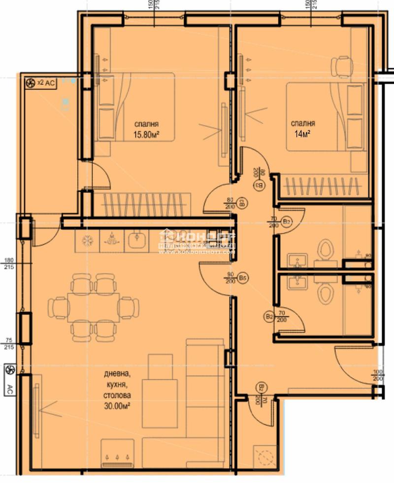 Оферта 55298: Предлагаме Ви възможността да си закупите тристайно жилище в новоизграждаща се малка и модерна сграда, разположена на тихо и спокойно място в квартал Смирненски, в близост до голям зелен парк, детска градина и елитни училища, като района е наричан още 'Зелените дробове на град Пловдив'. Сградата е проектирана с коренно различна концепция за визия и стил, с цел да създаде максимален комфорт,съчетаваща високо качество на изпълнение. Апартаментът се състои от слънчева западна 30 кв.м. дневна с трапезария и кухненски бокс, голяма спалня - 16 кв.м с излас към тераса обща за двете стаи, втора спалня - 14 кв.м , две бани с тоалетна, отделен килер и входно антре.Изпълнението се осъществява с висококачествени материали и съвременни технологии по европейски стандарт петкамерна PVC дограма, блиндирана входна врата с 4-странно заключване, иноксови парапети, декоративни фасадни мазилки и Еталбонд, сензорно осветление. Сградата се намира в един от най-предпочитаните напоследък за живеене райони в града, с обширна паркова среда, а именно близостта до Гребна База правят имота особено подходящ, както за живеене, така и за отдаване под наем. Проектирано е изграждането на надземни паркоместа на цени от 8000 и партерни гаражи. Възможност за разсрочено плащане в рамките на строителството и съдействие от наша страна за преференциални условия при теглене на банков кредит от водещи банки!