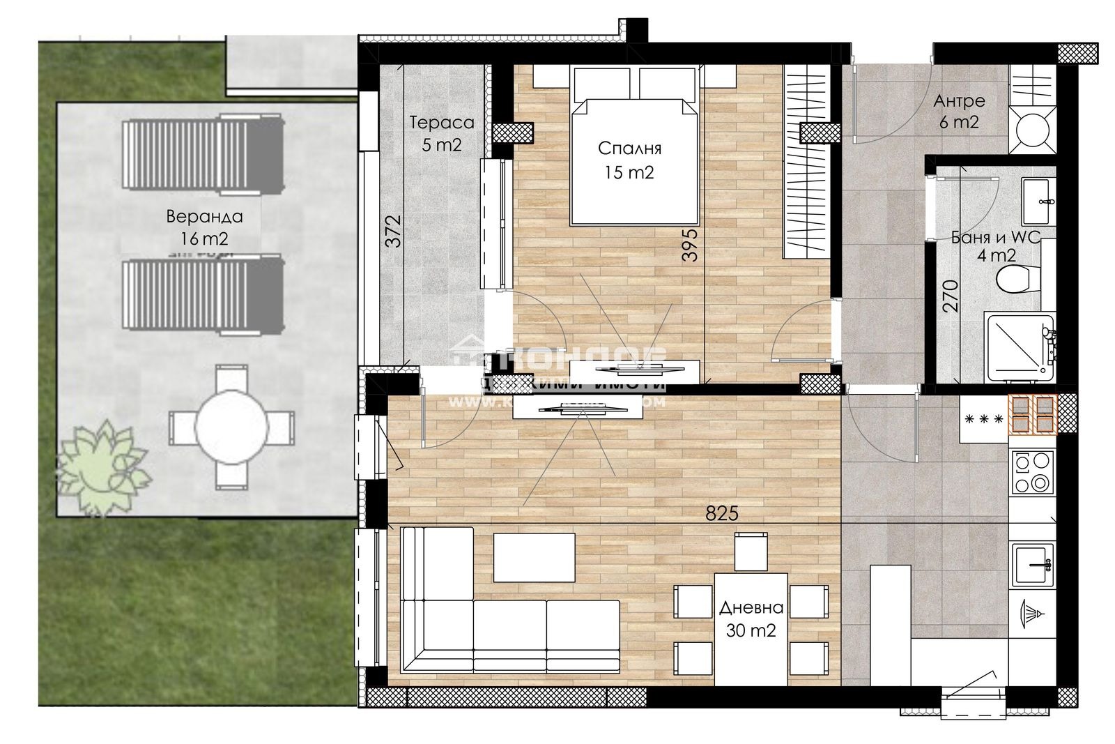 Оферта 59342: АКТ 16!!! Представяме на Вашето внимание комплекс от затворен тип в град Пловдив. Вече 15 години компанията акцентира върху комфорта, безопасността и сигурността в своите комплекси, естетичното оформление на пространството около сградите и отлично развитата инфраструктура, сред която умело да бъдат съчетавани работа, развлечения, спорт и почивка. Апартаментът, които ви предлагаме се състои от Просторна дневна - 30 кв.м. със светъл кухненски бокс, голяма самостоятелна спалня 15 кв.м., баня с тоалетна, входно антре с кът за перално, една тераса и веранда 16 кв.м. Най-новият проект на компанията е луксозен комплекс, който е разположен в южната част на град Пловдив, обграден от природа, която дава неподправено усещане за простор и спокойствие, с невероятна гледка към Родопите. Комплексът се базира на концепцията за извънградски комплекс, където в голям терен се разполагат по-малки жилищни единици, къщи и апартаменти, които предлагат спокойствието в покрайнините на града. В сградите има жилища с една и две спални, единични и двойни подземни и надземни гаражи, както и външни паркоместа. На входа на всяка сграда е поставена система за индивидуален чип, високоскоростни асансьори, а вътрешнопарковото пространство е решено в богата висока и ниска растителност, заобиколена от живописни зеленина, детска площадка и площ за спорт. Благодарение на ниската си плътност на застрояване, архитектурния си дизайн и добрата ориентация, комплексът е предпочитано място, което осигурява на обитателите си спокоен и качествен живот. Осигурено Банково Финансиране с изключително Изгодни условия за клиенти на Агенцията от Водещи Банки !!!