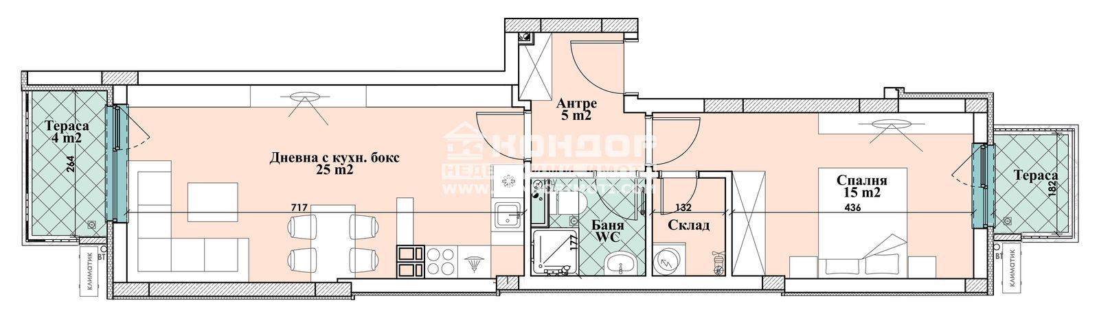Оферта 59984: СПЕЦИАЛНО ПРЕДЛОЖЕНИЕ- ТОП ЛОКАЦИЯ в сърцето на гр. Пловдив. ПРЕФЕРЕНЦИАЛНИ ЦЕНИ ЗА ПЪРВИТЕ ЗАКУПИЛИ. Представяме Ви проект, вдъхновен от най-добрите имоти на европейския пазар, представляващ възможност за комбинация между удобно разположен дом, качествено строителство и централен район. Нова, модерна и луксозна сграда с малък брой апартаменти и функционално разпределение. Жилището, което ви представяме е двустайно и се състои от дневна 25кв.м. с трапезария и кухненски бокс, голяма самостоятелна спалня 15 кв.м., баня с тоалетна, склад, широко входно антре с място за гардероб и две тераси. Материали - Жилищната сграда се изражда съгласно високи технологични изисквания за качество и лукс. Използваните материали са съобразени с най-новите тенденции в строителството - модерна външна облицовка, покривна и фасадна изолация, PVC пет камерна дограма и др. Луксозните общи части фотоклетки и безшумен хидравличен асансьор, допринасят допълнително за усещането за лукс и комфорт на обитателите. За удобството на своите собственици, сградата разполага с гаражи и паркоместа. - Проектът е предназначен за модерния забързан човек, търсещ удобствата на града. Приложените изображения са от готова сграда на строителната компания.ВИЖТЕ ОЩЕ ИЗГОДНИ ОФЕРТИ НА https://www.kondorimoti.com/ С ЕЖЕДНЕВНА АКТУАЛИЗАЦИЯ!