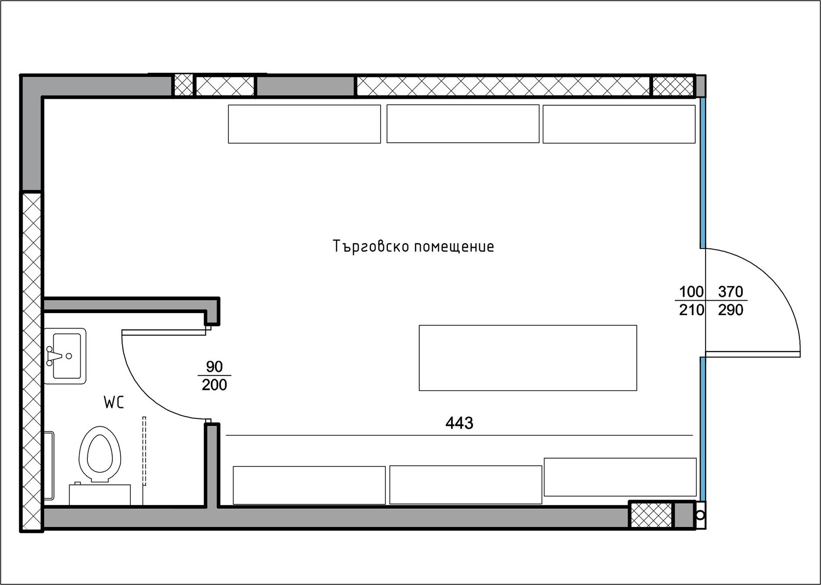 Разпределения - Предлагаме на Вашето внимание магазин с витрина към оживена улица с едно помещение и санитарен възел. Подходящо за офис, магазин, кабинет, салон за красота, фреш бар и др. Има възможност за обединение със съседни магазини с квадратури от 29 или 33кв.м.