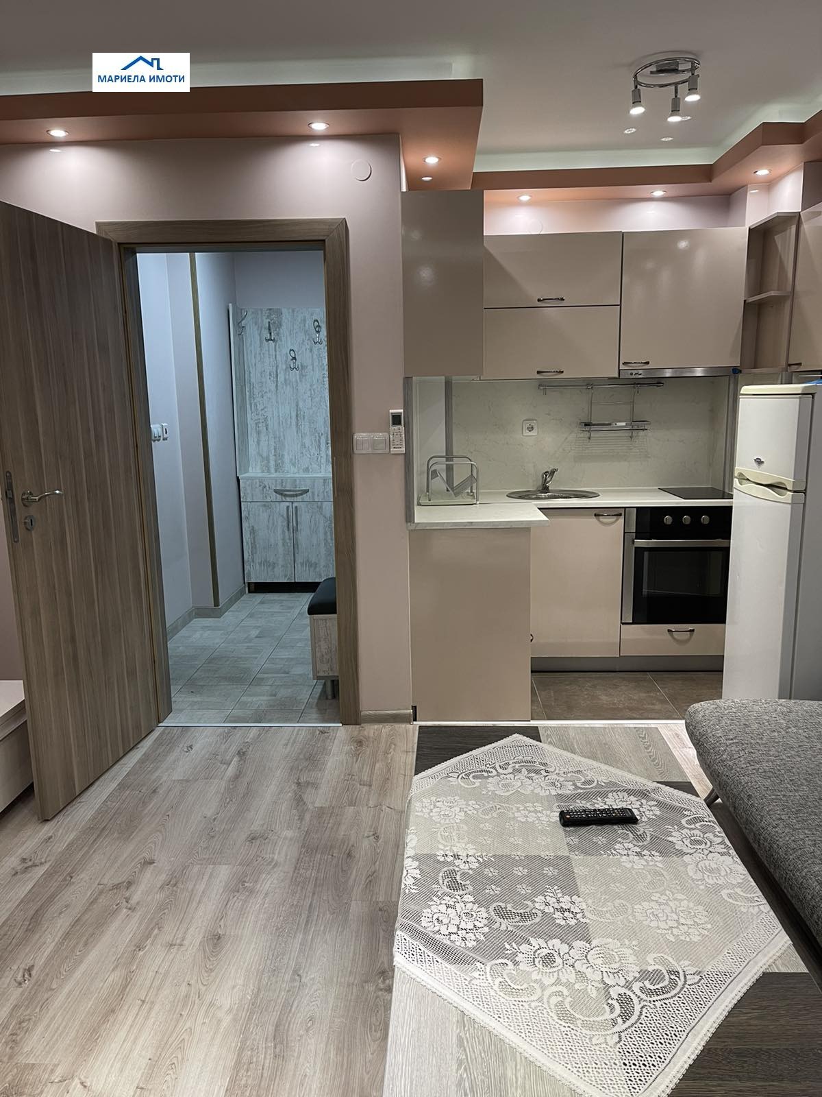 Апартаментът се намира в нова кооперация с луксозно завършени общи части.Състои се от хол с бокс,преходна спалня,коридор,голяма баня и тераса.Изложение изток.Напълно обзаведен.В хола има ъглов диван,в бокса-вградена фурна,стъклокерамичен котлон,съдомиялна,хладилник,аспиратор.В спалнята-спалня с гардероб.Жилището е климатизирано-климатик ДАЙКИН.Вдвете стаи има LCD телевизори.Банята е над 10 м2 с пералня и бойлер,шкаф с огледало.Наблизо големи супермаркети-Била,Лекси,Лидъл,а също УХТ и нова сграда на ПУ. Свободен от 15.06.2025г.За контакти:Мариела Йорданова 0899107396