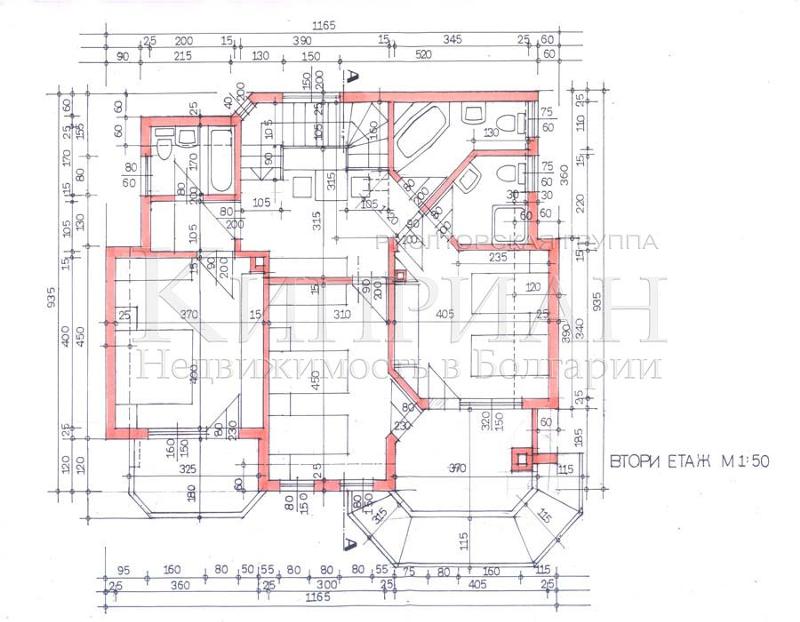 Втори етаж - емпоре и три спални, две от спалните със собствении бани, баня-тоалет.