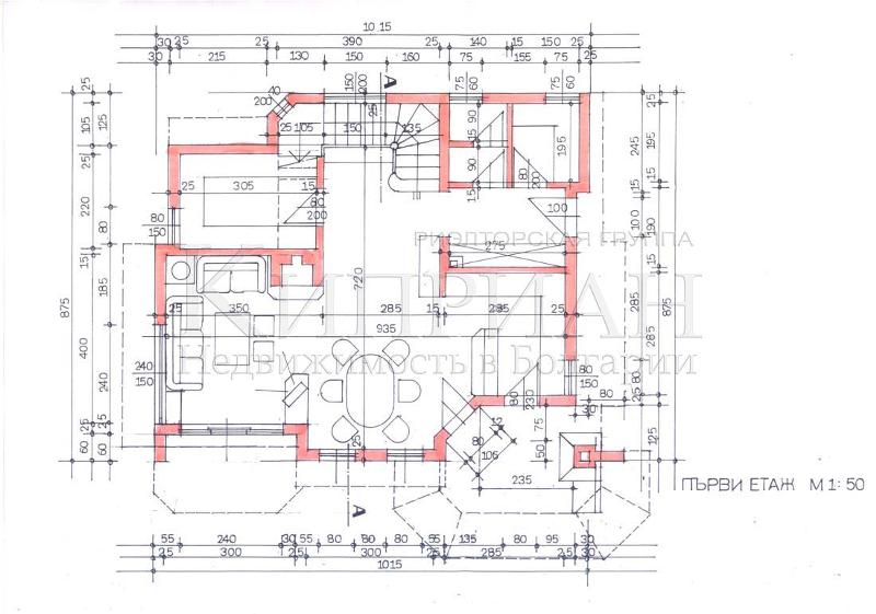 Първи етаж - дневен тракт с кухненска част с камина, тоалет, килер и перално помещение.