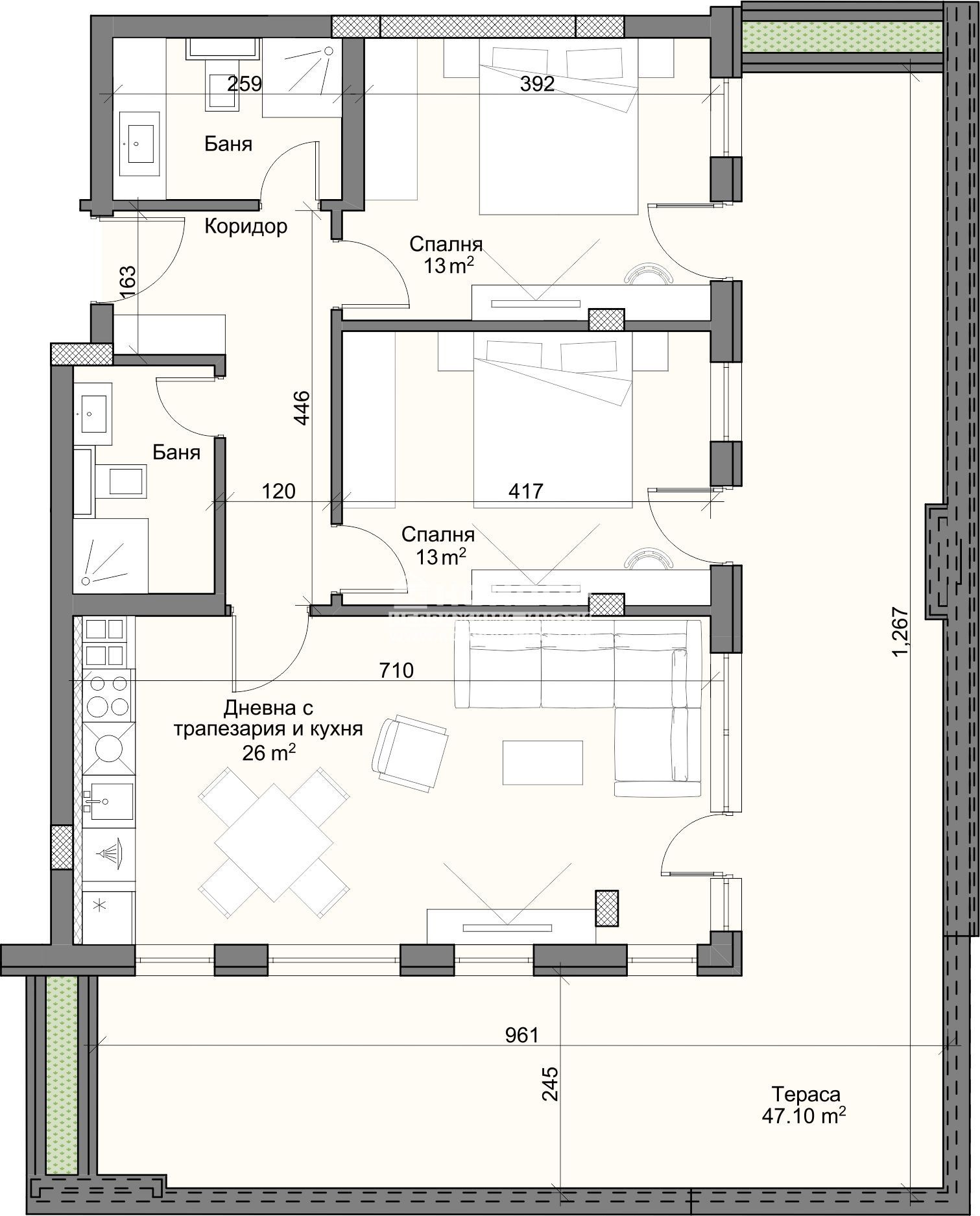 Оферта 55454:ГОТОВА СГРАДА! Предлагаме Ви възможността да закупите 3-стаен апартамент в луксозен жилищен комплекс с модерна визия, проектиран да създаде максимален комфорт на живущите в него. Основната концепция e премиум строителство, отличаващо се със съвременен архитектурен дизайн и европейска визия. Едно от основните му предимства е страхотната локация, разположен на пешеходна близост до Централна градска част, съчетаващо лукс спокойствие и комфорт. Жилището се състои от просторна южна дневна с трапезария и кухненски бокс, родителска спалня - 13 кв.м, втора спалня, една панорамна тераса - обща за всички стаи, две санитарни помещения и коридор. Към жилището има прилежаща изба - включена в цената. Основната концепция при проектирането е да се постигнат просторни и функционални стаи с цел да се създаде максимален уют на модерното семейство. Изключителна съвременна архитектура и модерна технология на строителство. Визията е иновативна, привличаща внимание с уникалността си. Безопасна и сигурна среда за пребиваващите допълват комфорта на сградата. Всяко жилище разполага с пълно окабеляване за домофон, интернет и кабелна телевизия, общите части са луксозно завършени, а апартаментите са с алуминиева дограма с троен стъклопакет от най-висок клас, както и масивна блиндирана входна врата. За удобство на живущите съществува възможността да закупят подземни паркоместа. Възможност за закупуване чрез Банков Кредит на изключително изгодни условия за клиенти на агенцията !!!