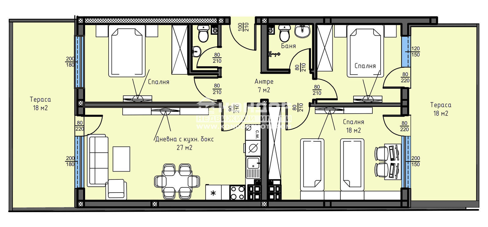 БЕЗ КОМИСИОН ОТ КУПУВАЧА!!! Предлагаме Ви възможността да си закупите многостаен апартамент в нискоетажана жилищна сграда намираща се на тихо и спокойно място в близост до всички необходими комуникации, училища, детски градини, удобен транспорт и големи хранителни хипермаркети. Сградата е проектирана проектирана с изключително нисък процент общи части - 10%, което дава повече реална и използваема площ на стаите и създава максимален комфорт на своите ползватели. Жилището се състои от просторна слънчева дневна 27кв.м. с трапезария и кухненски бокс, три самостоятелни спални, баня с тоалетна, втора тоалетна, перално, входно антре и две чудесни панорамни тераси по 18кв.м. Перспективна ИНВЕСТИЦИЯ ЗА ОТДАВАНЕ ПОД НАЕМ!!! Изпълнението се осъществява с висококачествени материали и съвременни технологии, по европейски стандарт, шест камерна PVC дограма, блиндирана входна врата с 4-странно заключване, сензорно осветление, хидравлични асансьори с огледална кабина. Свободни Паркоместа на цени от 8000 евро и партерни Гаражи !!! Приложените снимки са от друга готова сграда на строителната фирма. Възможност за закупуване на разсрочено плащане в рамките на строителството или чрез Банков Кредит на изключително изгодни условия, договорени за клиенти на Агенция КОНДОР !!!
