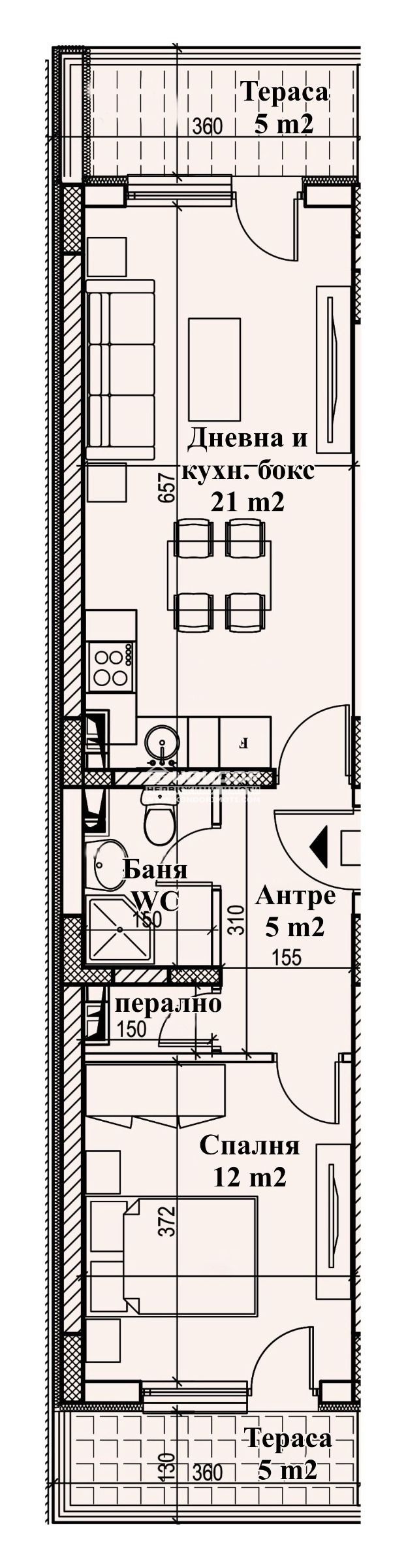 Оферта 56145: Предлагаме ви възможността да закупите просторни и светли апартаменти, намиращи се в сграда със съвременна архитектура с иновативна визия, съчетаваща модерни технологии с качествени материали на строителство, позиционирана в самото сърце на квартал Кършияка!!! Апартаментите са с отлично разпределение !!! Жилището което ви предлагаме е вътрешно и се състои от дневна с трапезария и кухненски бокс, напълно самостоятелна спалня 12м2, баня с тоалетна, перално, входно антре и две тераси. Сградата се строи от реномирана фирма с множество готови сгради в града, като можем да ви покажем качеството на изпълнение и материалите които се използват. Жилищата се отвършват според всички изисквания за качествено строителство, хидравличен асансьор, блиндирани входни врати, висок клас ПВЦ - дограма. Свободни Паркоместа и Гаражи на партерно ниво. Разсрочено плащане в рамките на строителството. СТРАХОТНА ИНВЕСТИЦИЯ!