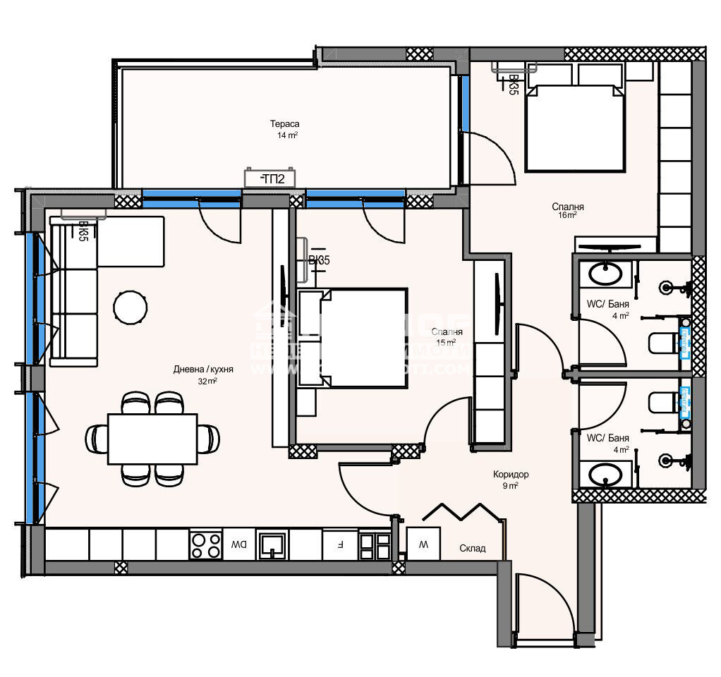 Оферта 64684: Представяме на Вашето внимание един проект на водеща фирма в изграждането на комплекси от затворен тип в град Пловдив. Строителната компанията акцентира върху комфорта, безопасността и сигурността в своите комплекси, естетичното оформление на пространството около сградите и отлично развитата инфраструктура, сред която умело да бъдат съчетавани работа, развлечения, спорт и почивка. Апартаментът, които ви предлагаме се състои от ъглова дневна с кухненска част 32кв.м., две самостоятелни спални: детска 12кв.м. и родителска 16кв.м. със собствена баня, втора баня с тоалетна, широко входно антре с място за перално и една тераса, обща за трите стаи. Най-новият проект на компанията е луксозен комплекс, който е разположен в северната част на град Пловдив, обграден от природа, която дава неподправено усещане за простор и спокойствие, с невероятна гледка към Родопите. Комплексът се базира на концепцията за извънградски комплекс, където в голям терен се разполагат по-малки жилищни сгради, които предлагат спокойствието в покрайнините на града. В сградите има жилища с една, две и три спални, единични и двойни подземни и надземни гаражи, както и външни паркоместа. На входа на всяка сграда е поставена система за индивидуален чип, високоскоростни асансьори, а вътрешнопарковото пространство е решено в богата висока и ниска растителност, заобиколена от живописни зеленина, детска площадка и площ за спорт. Благодарение на ниската си плътност на застрояване, архитектурния си дизайн и добрата ориентация, комплексът е предпочитано място, което осигурява на обитателите си спокоен и качествен живот. Осигурено Банково Финансиране с изключително Изгодни условия за клиенти на Агенцията от Водещи Банки !!! Приложените изображения са от готови сгради на строителната компания!ВИЖТЕ ОЩЕ ИЗГОДНИ ОФЕРТИ НА https://www.kondorimoti.com/ С ЕЖЕДНЕВНА АКТУАЛИЗАЦИЯ!