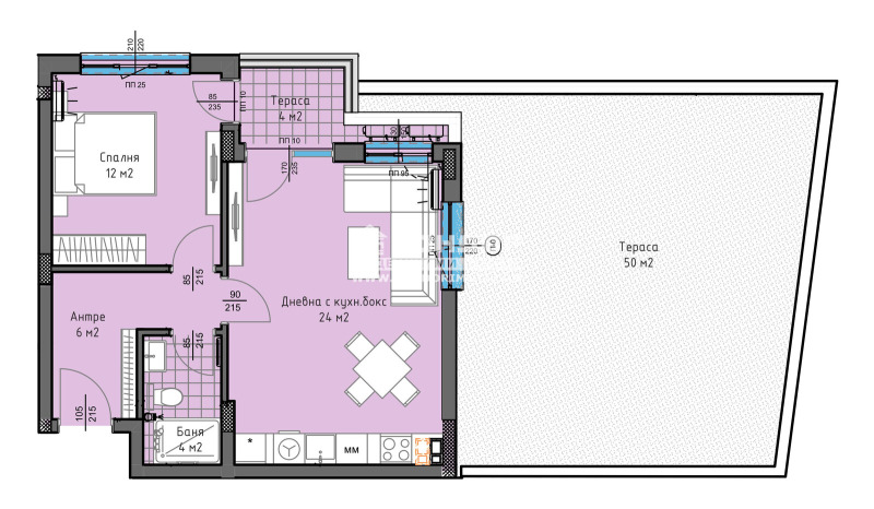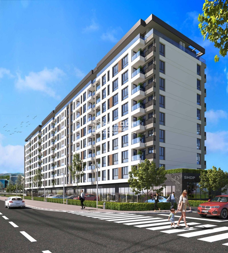 Оферта 64189: Предлагаме Ви възможността да закупите 2-стаен апартамент в новоизграден луксозен жилищен комплекс с модерна визия, проектиран да създаде максимален комфорт на живущите в него. Tри хоризонтално разположени жилищни секции с елегантен силует готов да предложи комфорт и модерен начин на живот. Едно от основните му предимства е добрата локация, отлична комуникативност и динамична пътна инфраструктура, която осигурява бърз и лесен достъп до комплекса, от всяка точка на града. Той съчетава лукс, спокойствие и комфорт, с подсигурени паркоместа и гаражи. Жилището се състои от просторна светла дневна /24 кв.м./ с кухненска част и трапезария с излаз на тераса, една самостоятелна спалня, баня с тоалетна, входно антре и една прекрасна тераса тип лятна/зимна градина. Към апартамента има прилежащо избено помещение включено в цената. Основната концепция при проектирането е да се постигнат просторни и функционални стаи, с цел да се създаде максимален уют на модерното семейство. Изключителна съвременна архитектура и модерна технология на строителство. Визията е иновативна, привличаща внимание с уникалността си. Всяко жилище разполага с пълно окабеляване за домофон, интернет и кабелна телевизия, общите части са луксозно завършени, жилищата са с алуминиева дограма с троен стъклопакет от най-висок клас, масивна блиндирана входна врата. За удобство на живущите съществува възможността да закупят подземни паркоместа и гаражи с топла връзка към комплекса. Гъвкави схеми на разсрочено плащане спрямо възможностите на клиента в рамките на строителството или закупуване чрез Банков Кредит, на изключително изгодни условия за клиенти на агенцията!!!